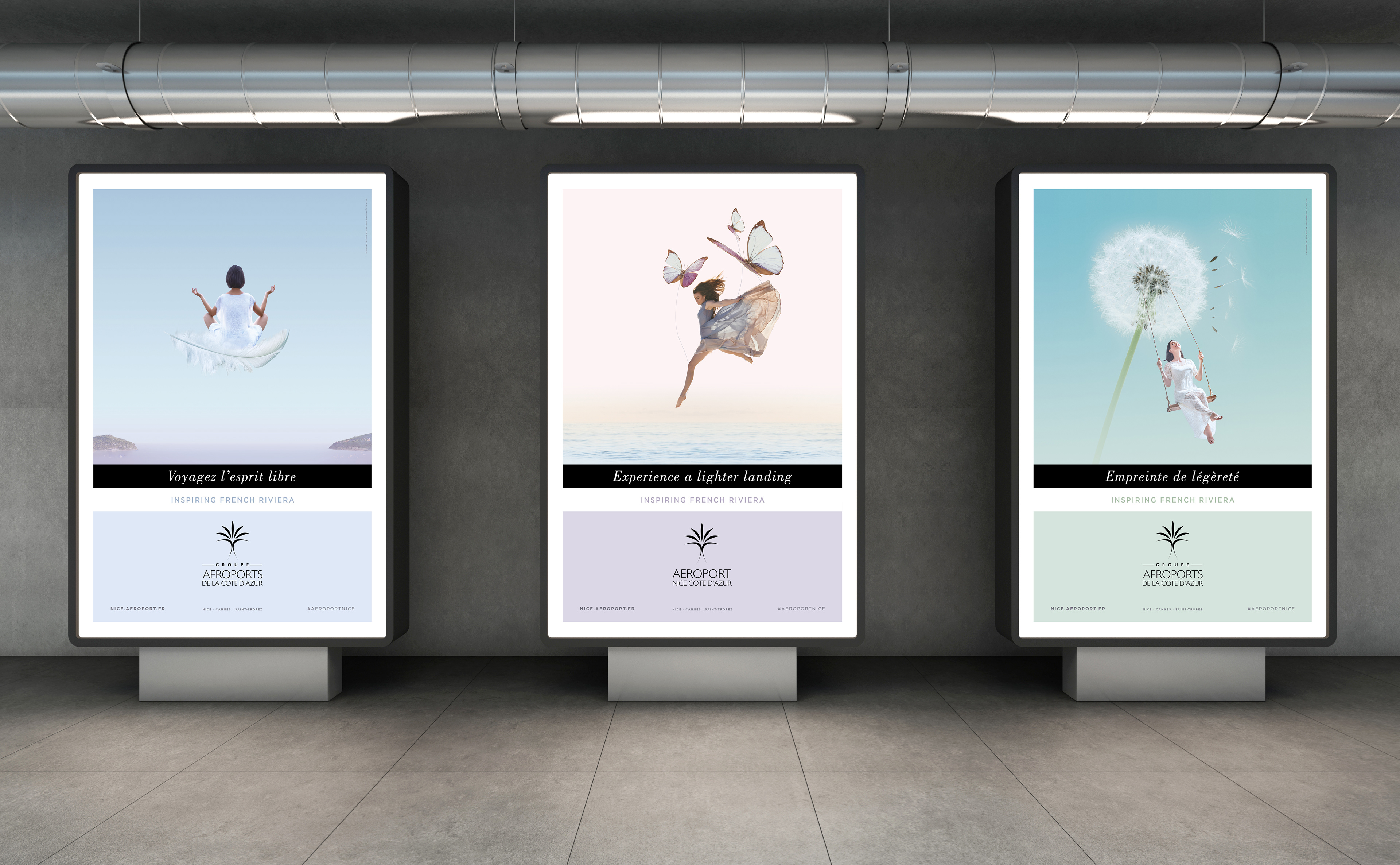 Légèreté, esprit libre, Riviera... Pour l’Aéroport Nice Côté d’Azur, l’agence O2C a confié à La Manufacture la conception d’une campagne de communication pour promouvoir la gestion et la logistique moins polluantes de l’aéroport, pour le bien-être des habitants et des voyageurs. Direction créative : La Manufacture pour O2C, www.O2C.fr