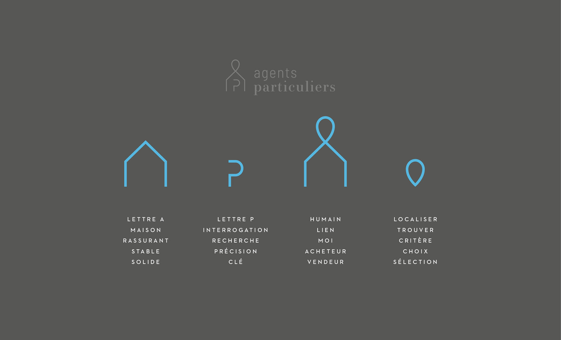 Agents Particuliers est la nouvelle solution sur mesure de mise invente immobilière entre particuliers : vendez votre bien comme un professionnel sans commission d’agence. Claire et facilement identifiable, l’identité visuelle conçue par La Manufacture intègre l’idée d’individu et des échanges humains, où vendeur et acheteur sont au cœur d’une transaction optimisée. Les lignes pures et une typographie classique et aérée évoquent le sérieux du service ; le choix d’un bleu doux, protégé par un gris anthracite dense, apporte une harmonie contemporaine et accueillante.