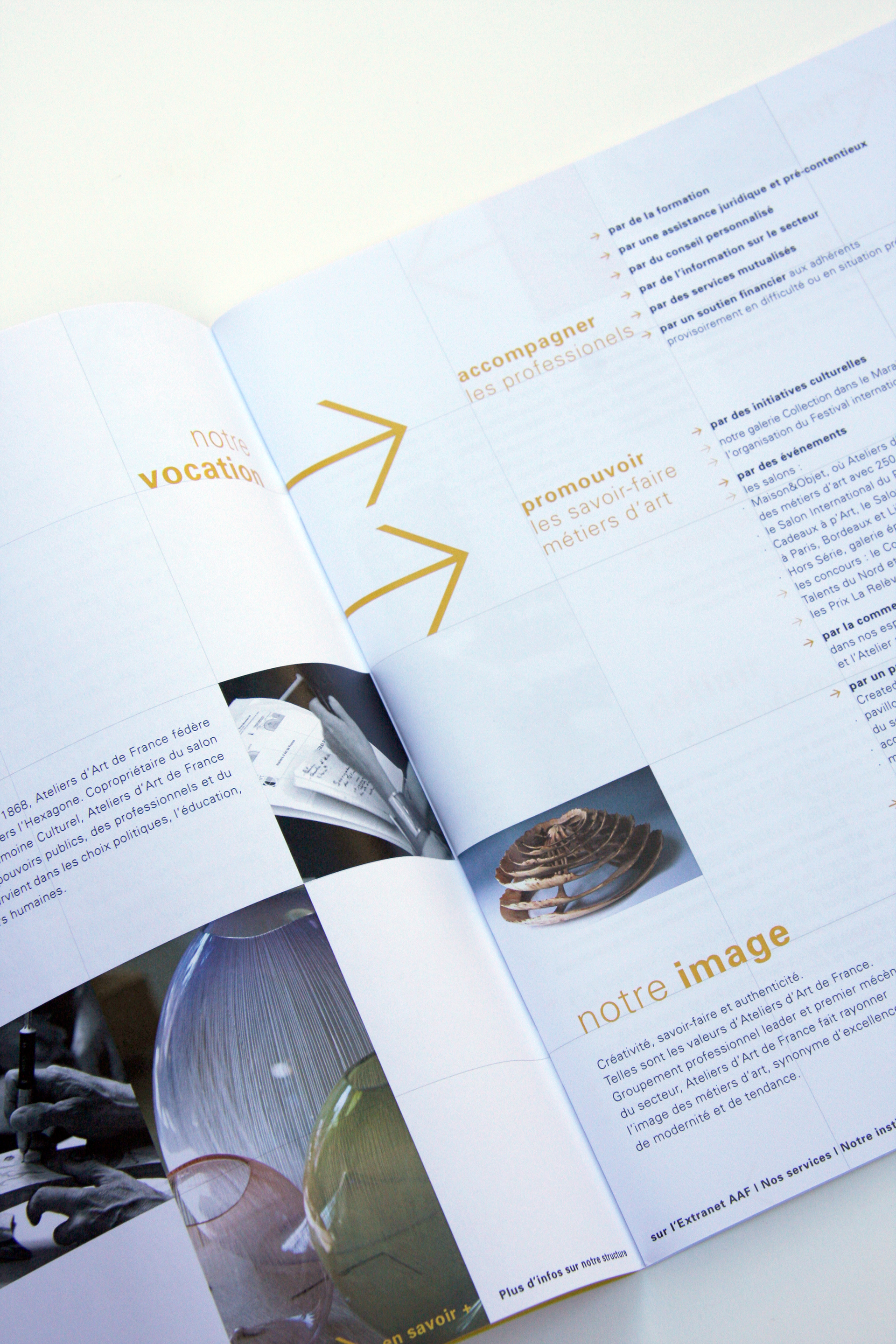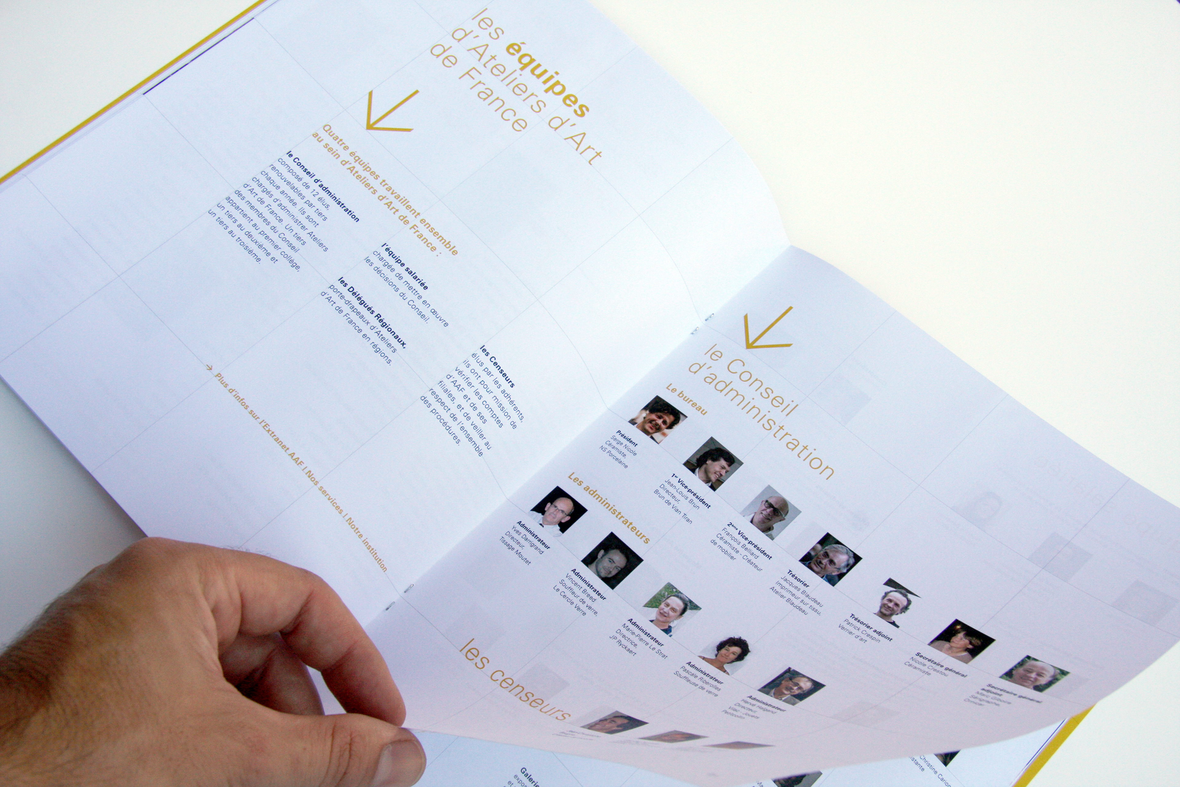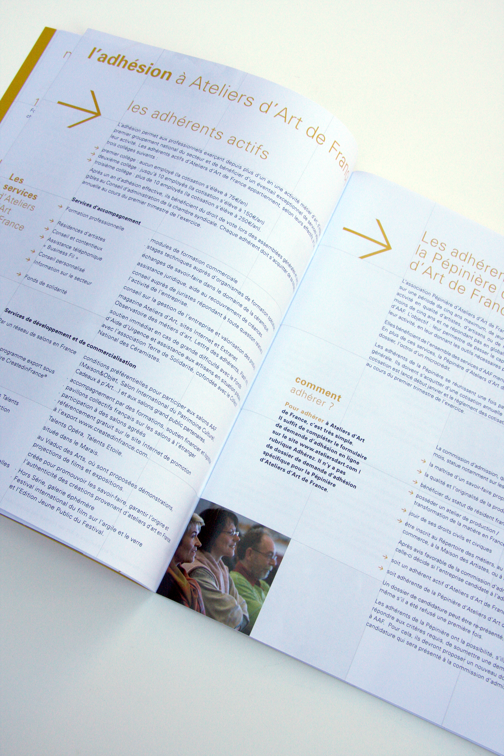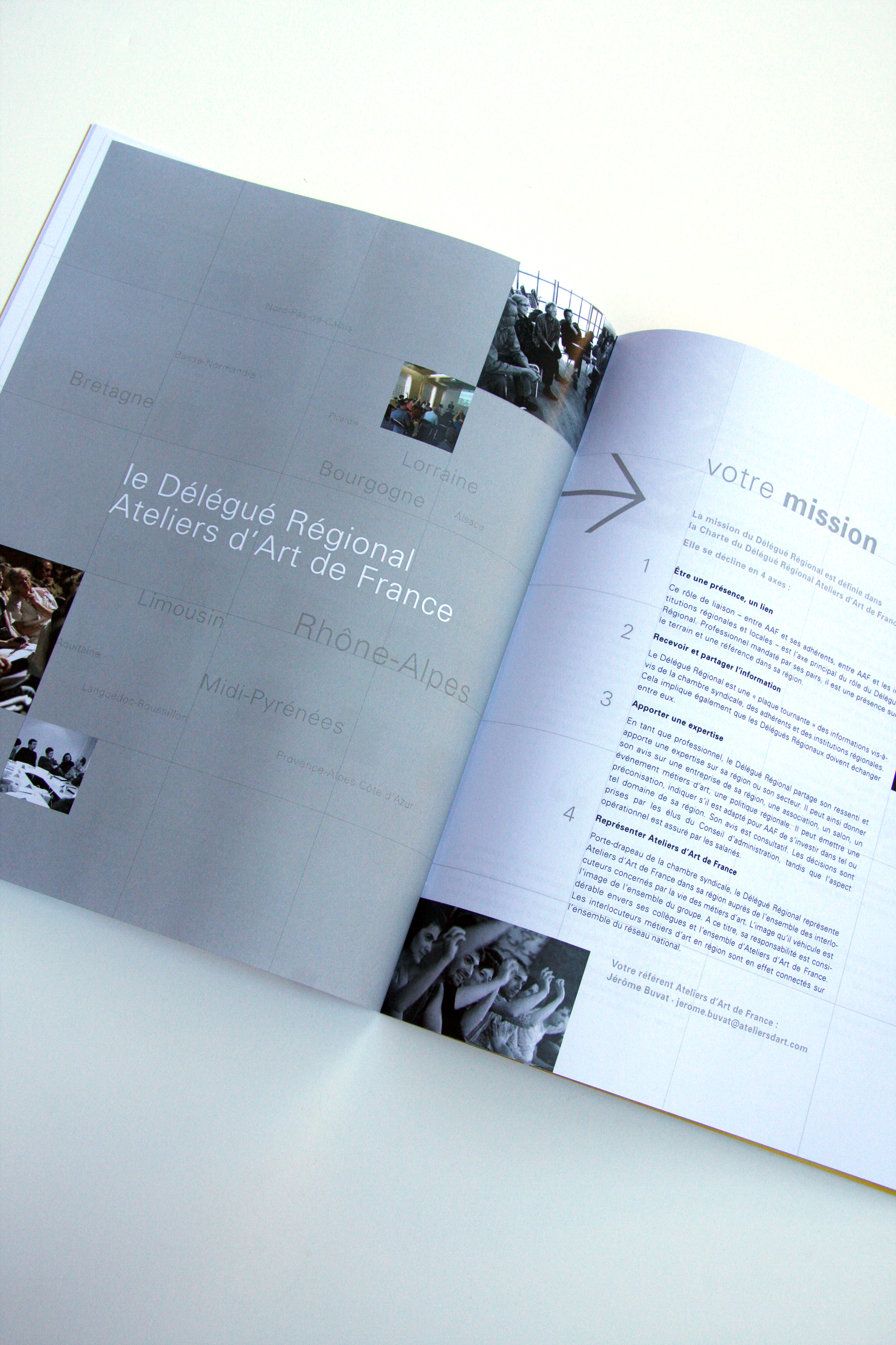 Conception de brochure de présentation, destinée aux futurs délégués régionaux pour amplifier les réseaux du groupement Ateliers d'Art de France. Ce guide présente l'institution Ateliers d'Art de France, son histoire, ses vocations, ses actions, et informe l'adhérent intéresse par des questions-réponses et grâce à une présentation claire du rôle des délégués régionaux.