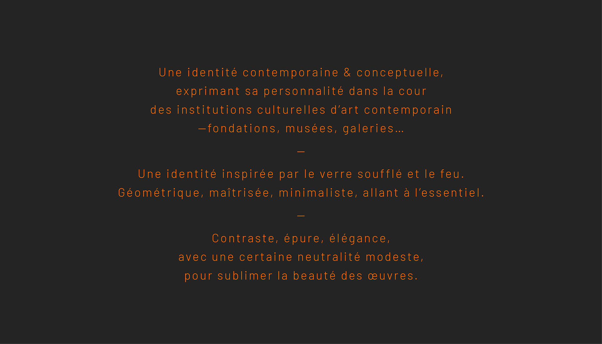 La Manufacture a conçu une identité contemporaine & conceptuelle pour le Centre d'Art du Verre Pierini, espace de création contemporaine des arts du verre à Biot, réunissant atelier d'artiste et espace d'exposition. La nouvelle identité visuelle —géométrique, maîtrisée, minimaliste, allant à l’essentiel— s'inspire des formes sensuelles et puissantes du verre soufflé et de l'intensité du feu des fours.
