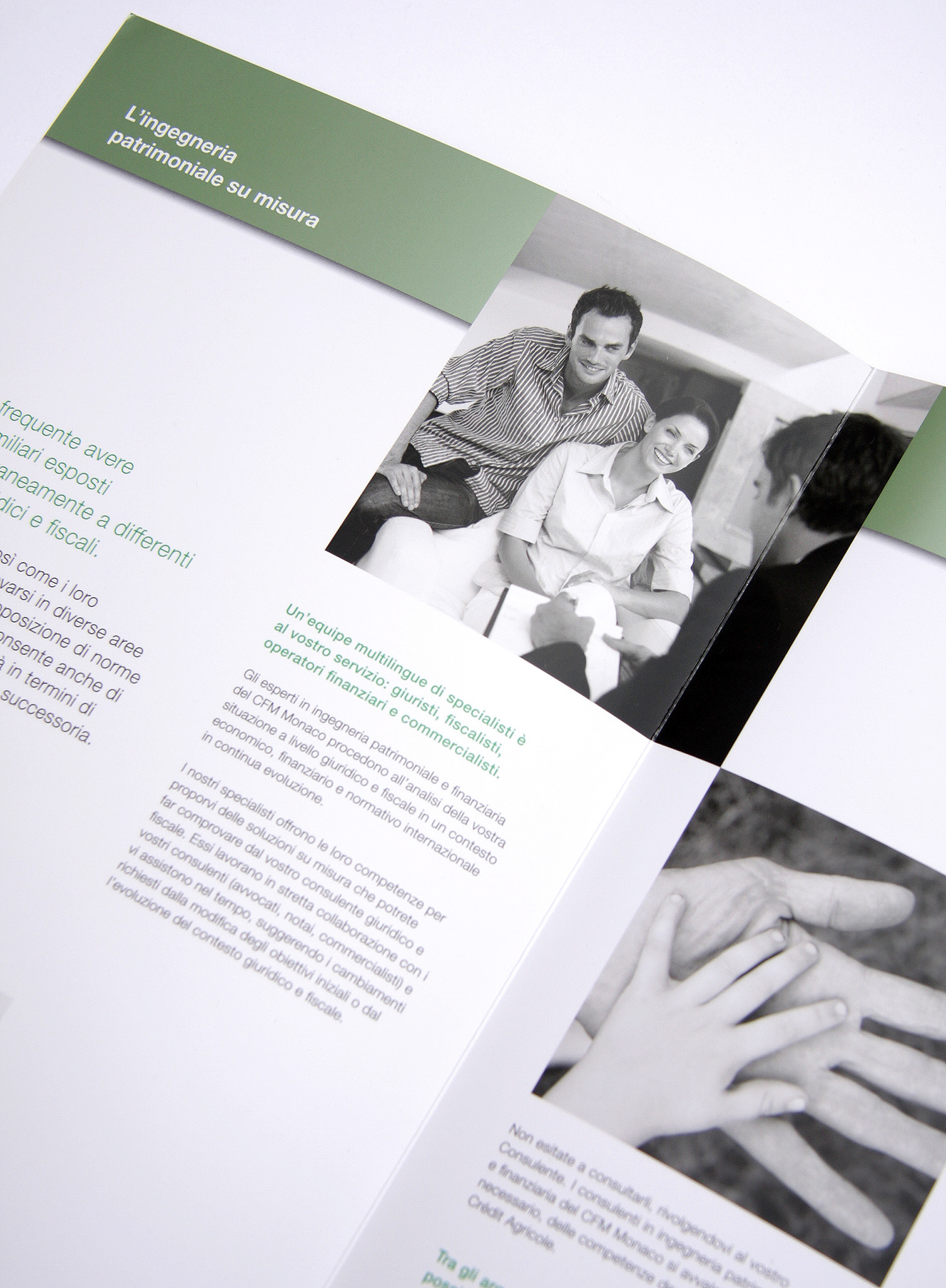 Conception du logotype de cette banque leader à Monaco. Conception de la charte graphique et application sur la documentation destinée aux clients. Création et réalisation de kit d'utilisateur pour la gestion en ligne des comptes client de cette banque privée monégasque.