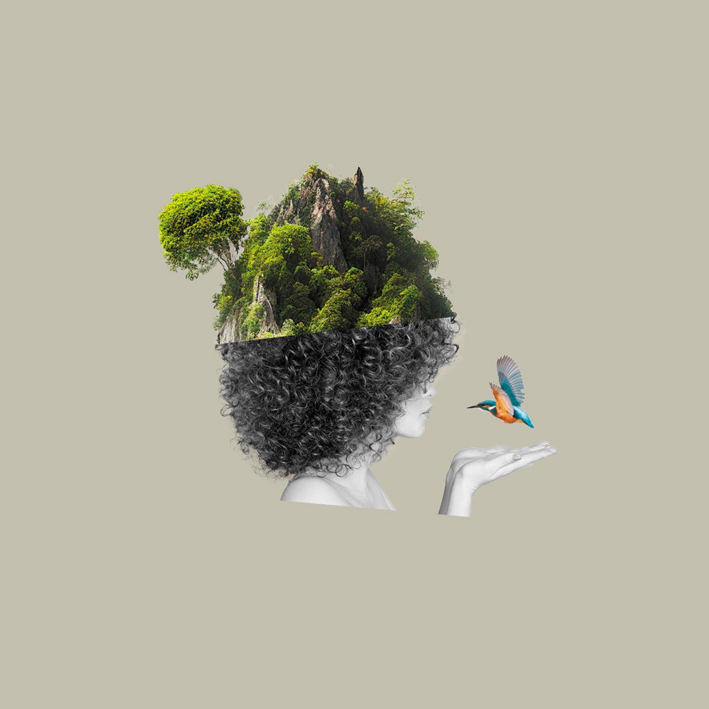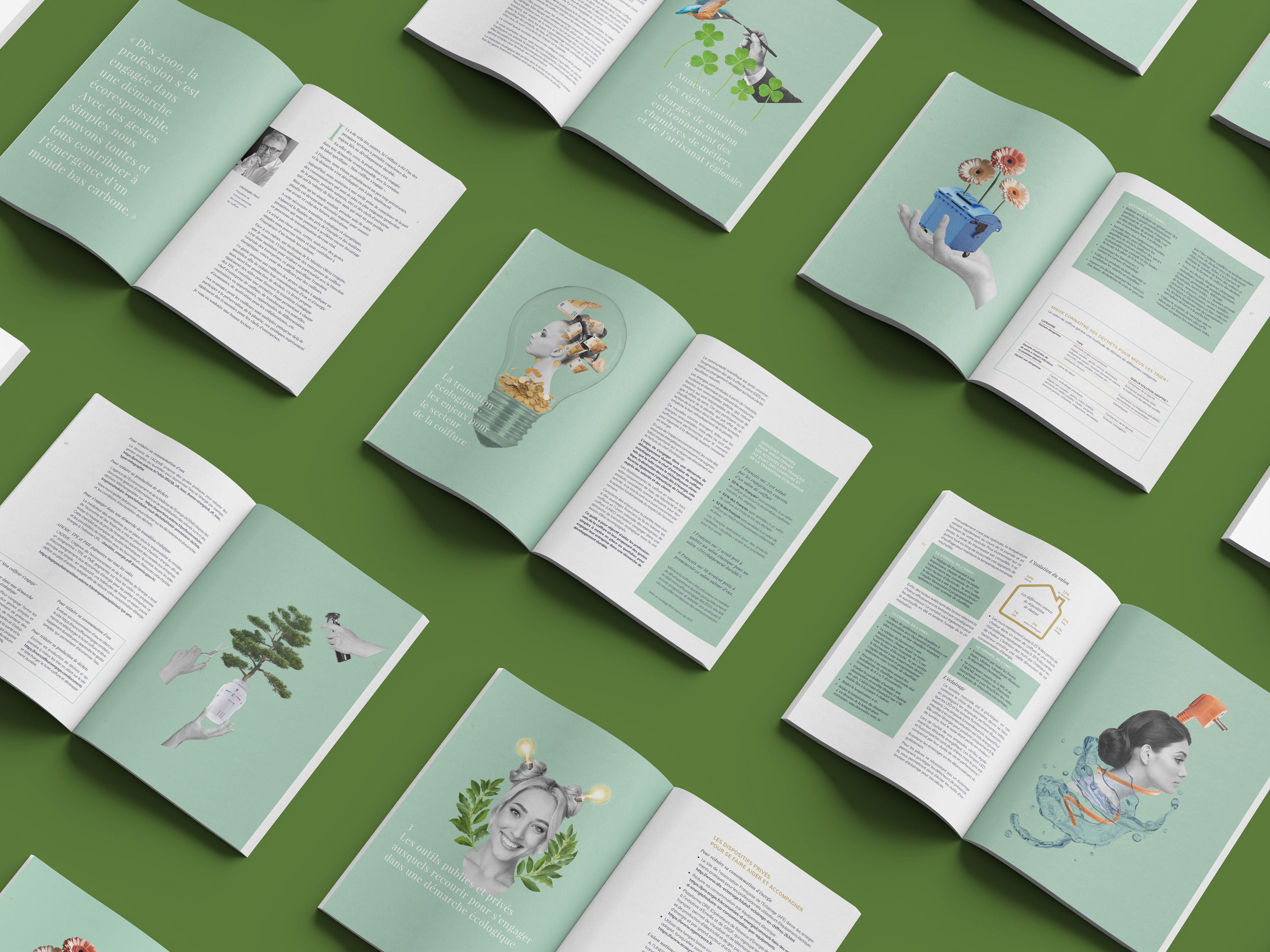 Conception d'une collection de collages originaux pour illustrer le Guide de la transition écologique des métiers de la coiffure.