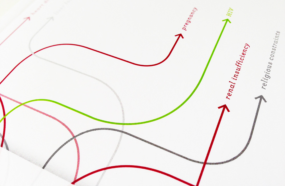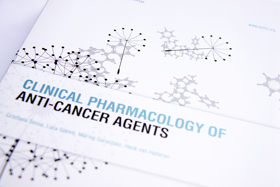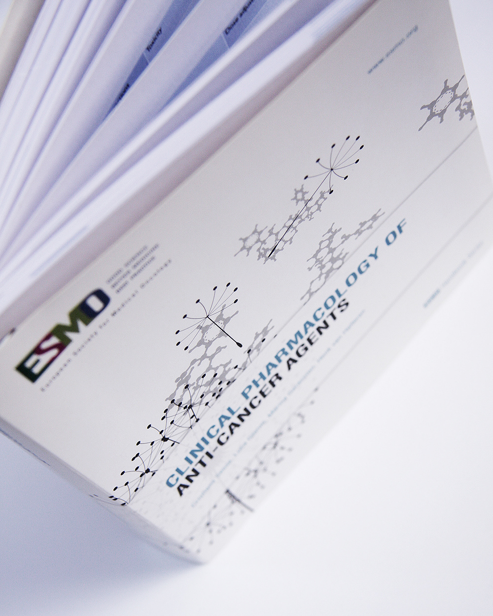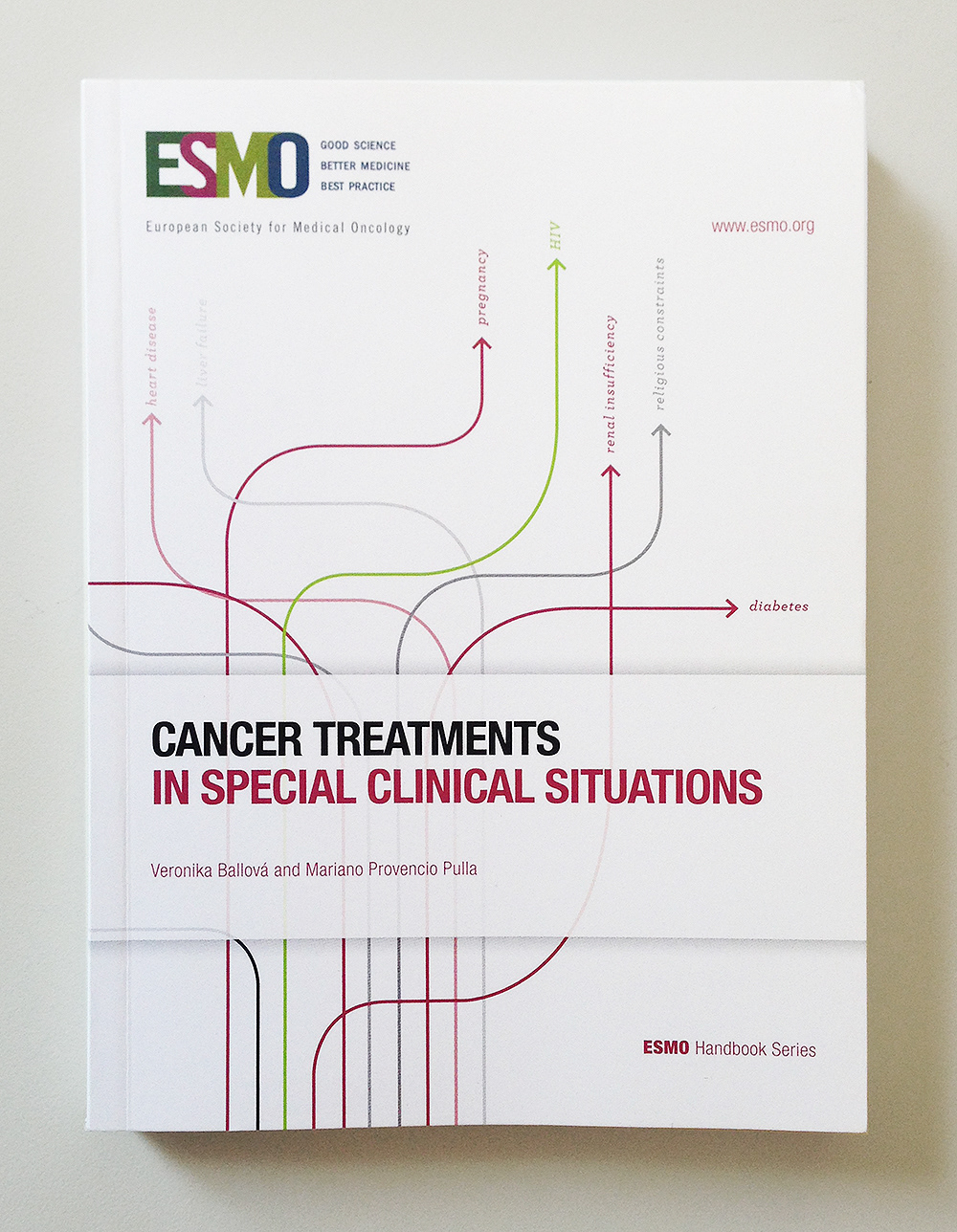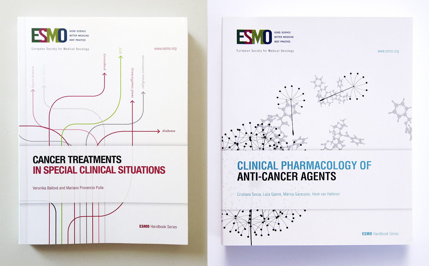 Conception graphique d'une collection de guides pratiques destinés aux oncologues. Création d'illustrations stylisées et épurées pour chaque thème, sur une approche infographique.