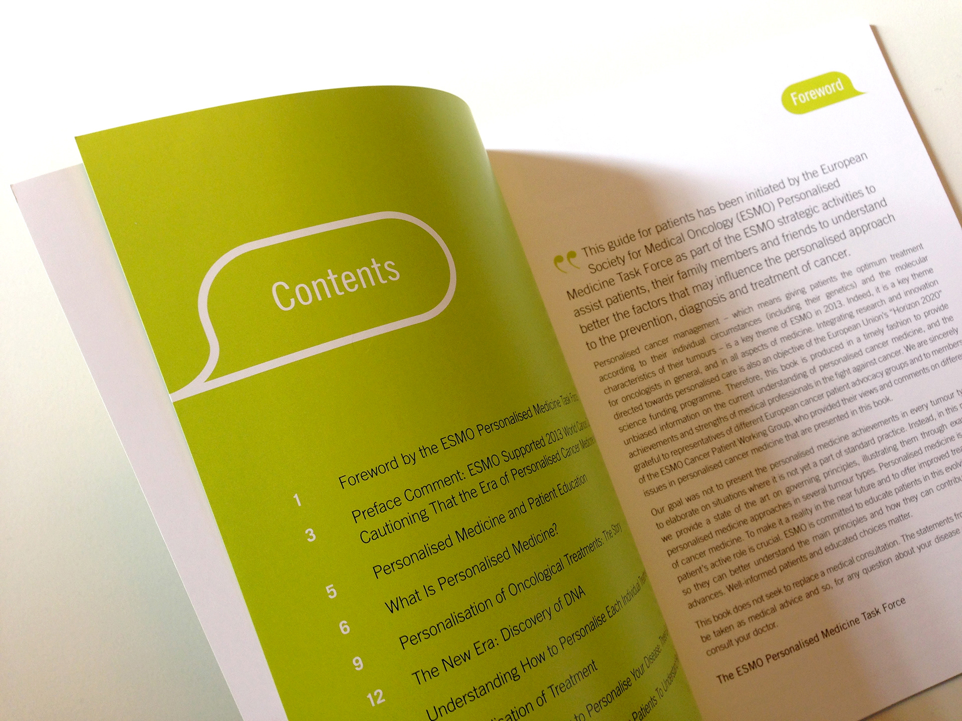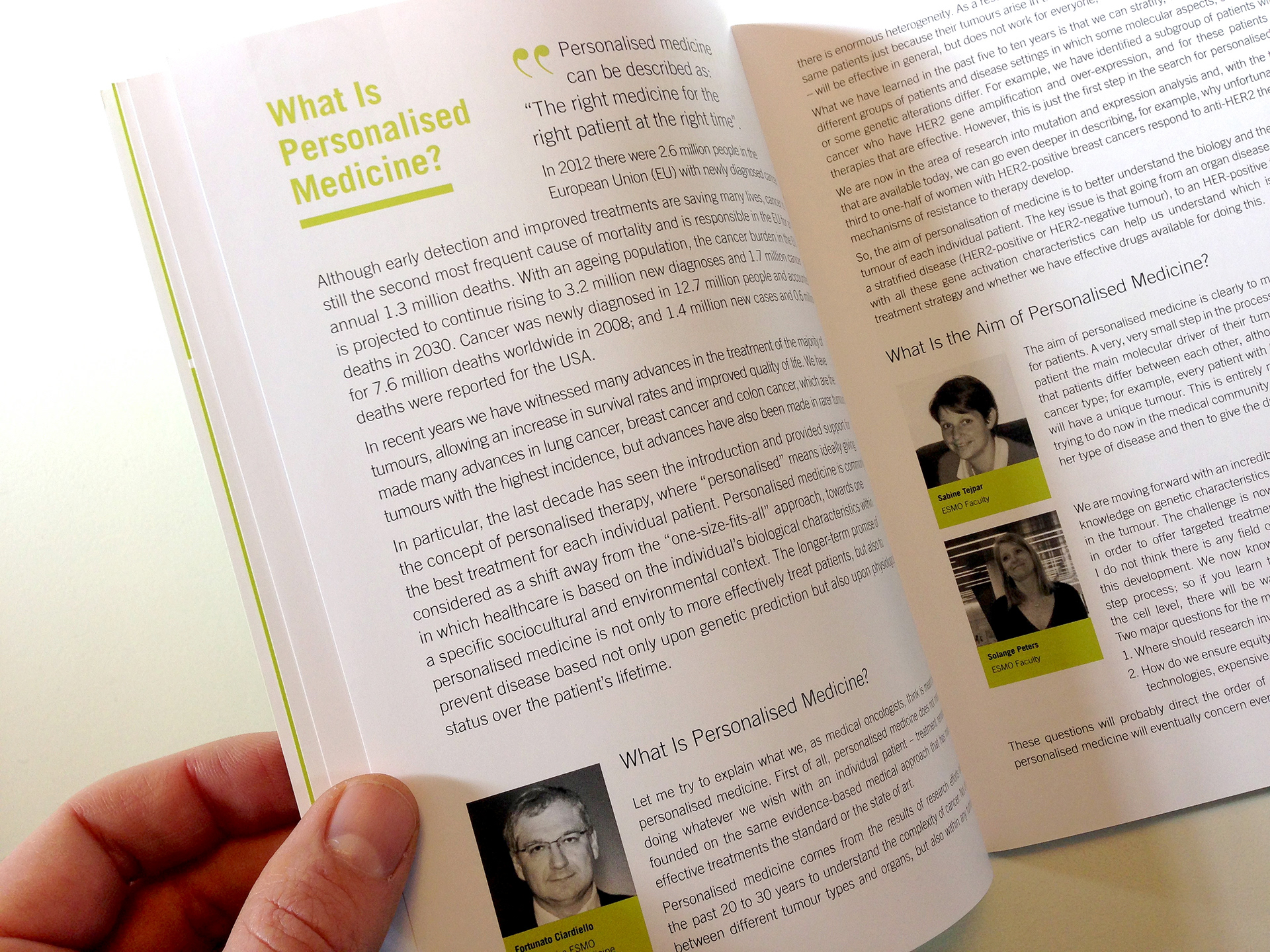 Conception d'une collection de brochures d'information destinées aux patients traités pour le cancer, éditée par ESMO.