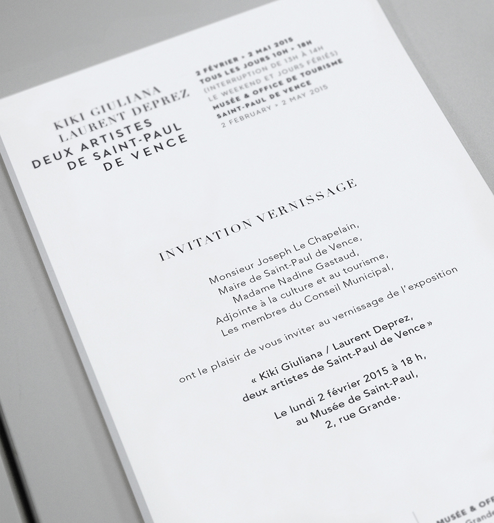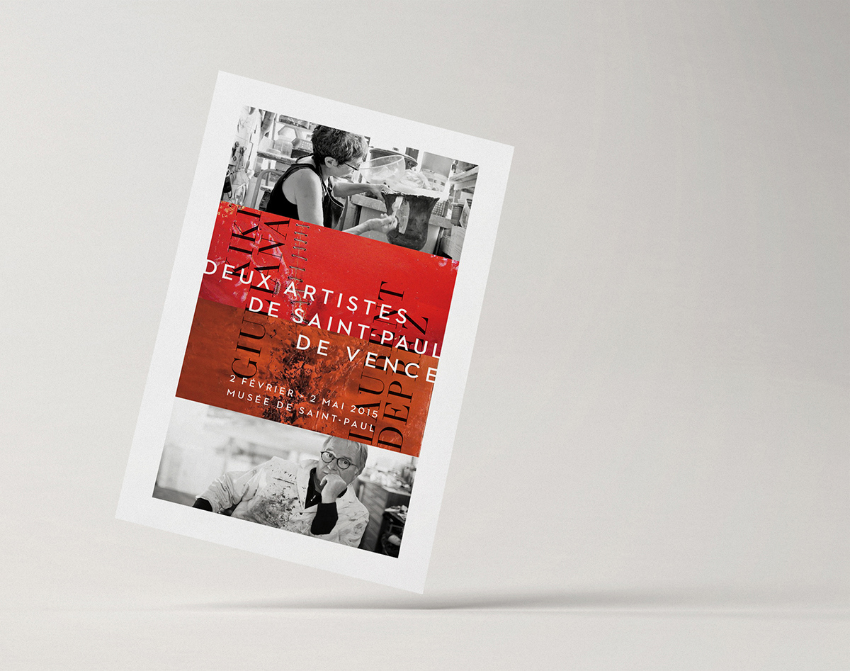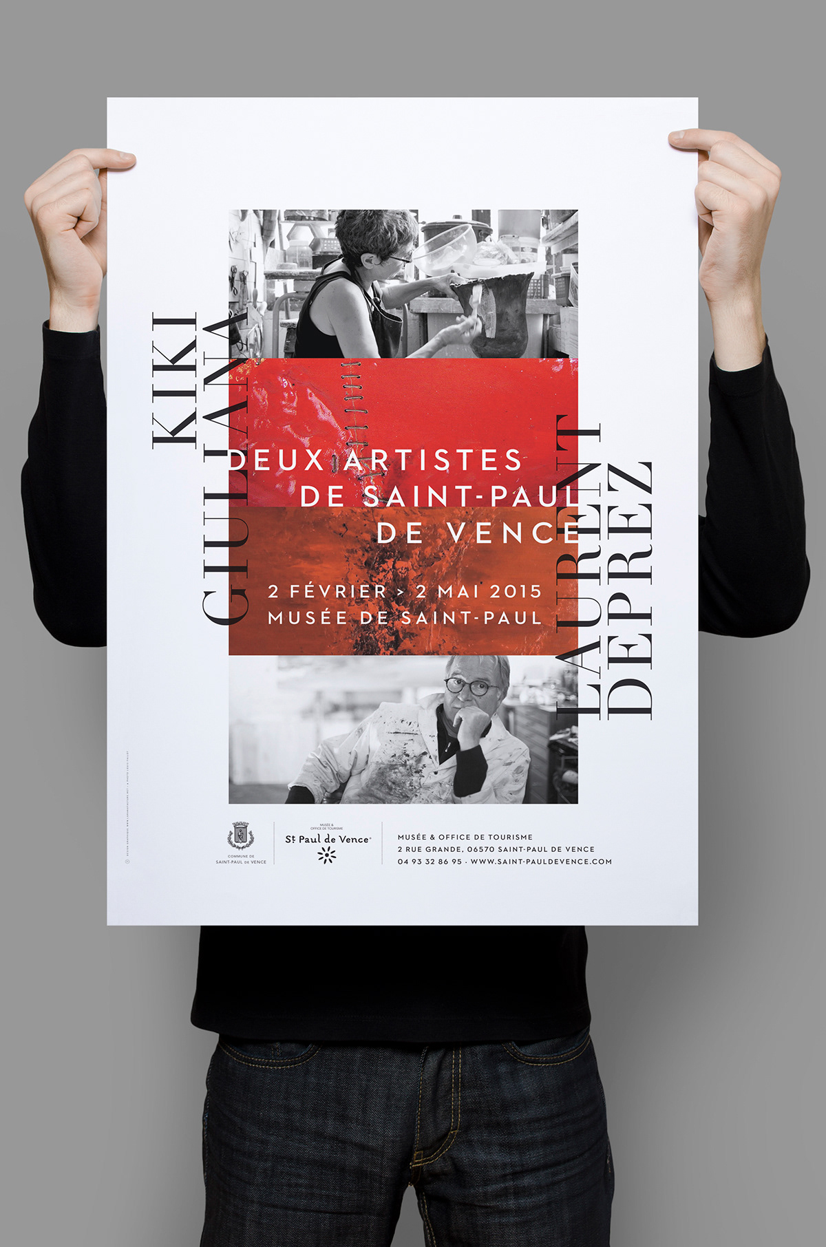 Près de 40 artistes œuvrent à l’intérieur et à l’extérieur des remparts de Saint-Paul de Vence. L’exposition de printemps au Musée de Saint-Paul leur est consacrée. Chaque année, 2 artistes locaux investissent les lieux. La Manufacture a imaginé un concept d'affiche et de flyer assorti, qui pourra être décliné chaque année avec la présentation de 2 nouveaux artistes.