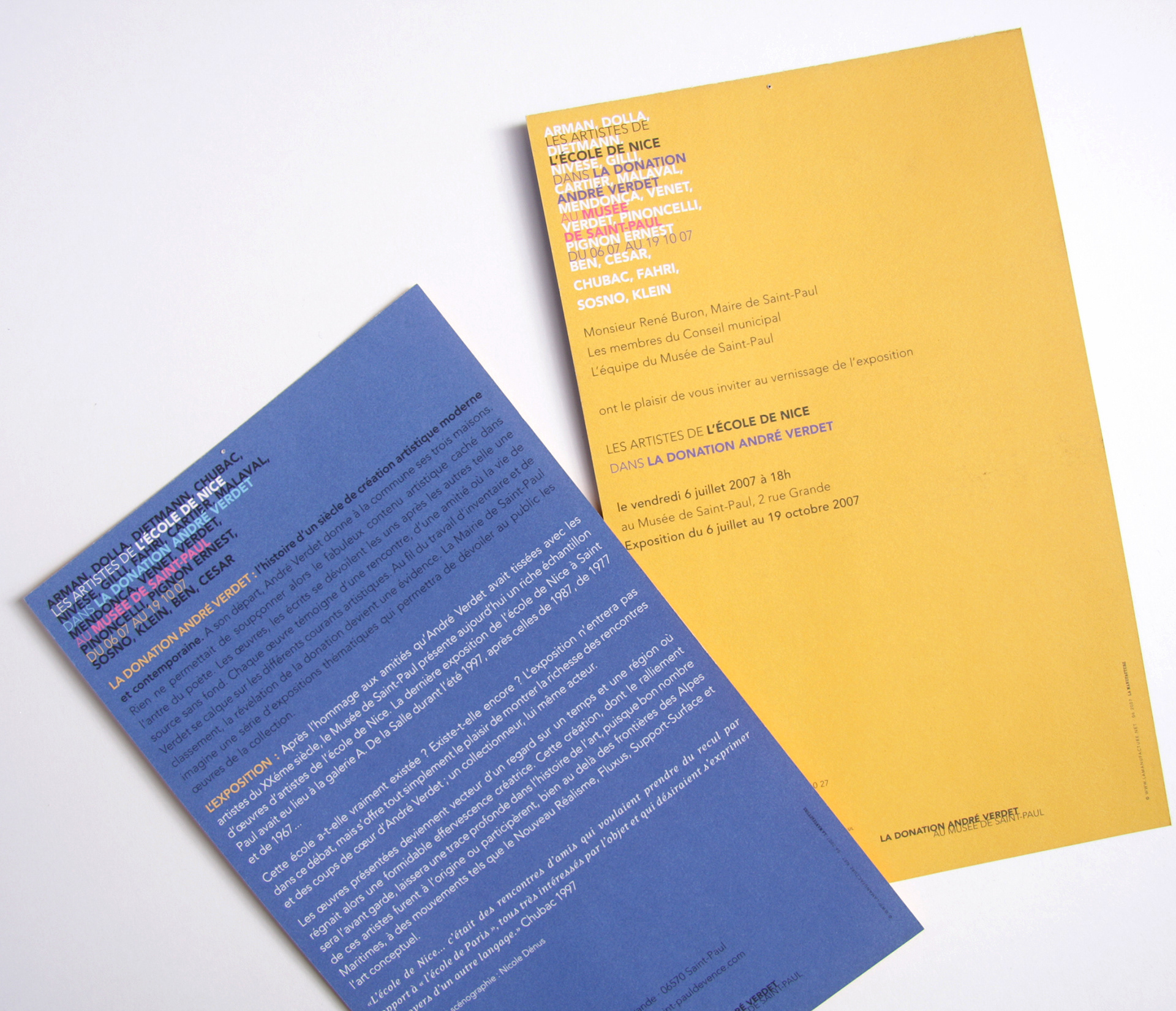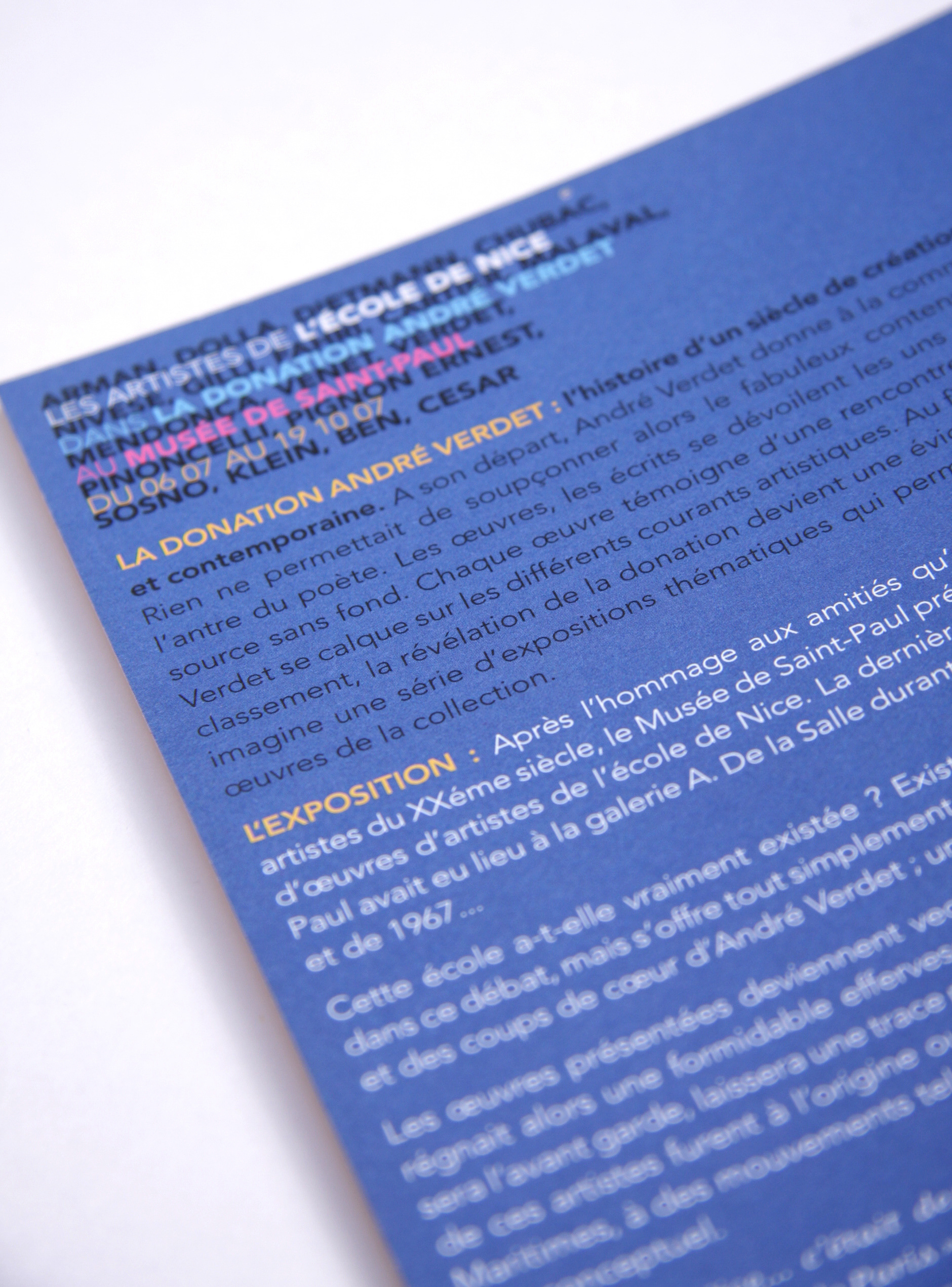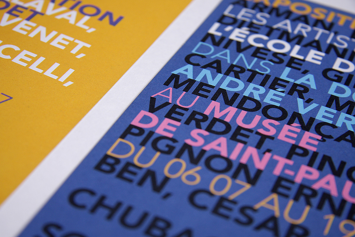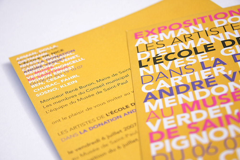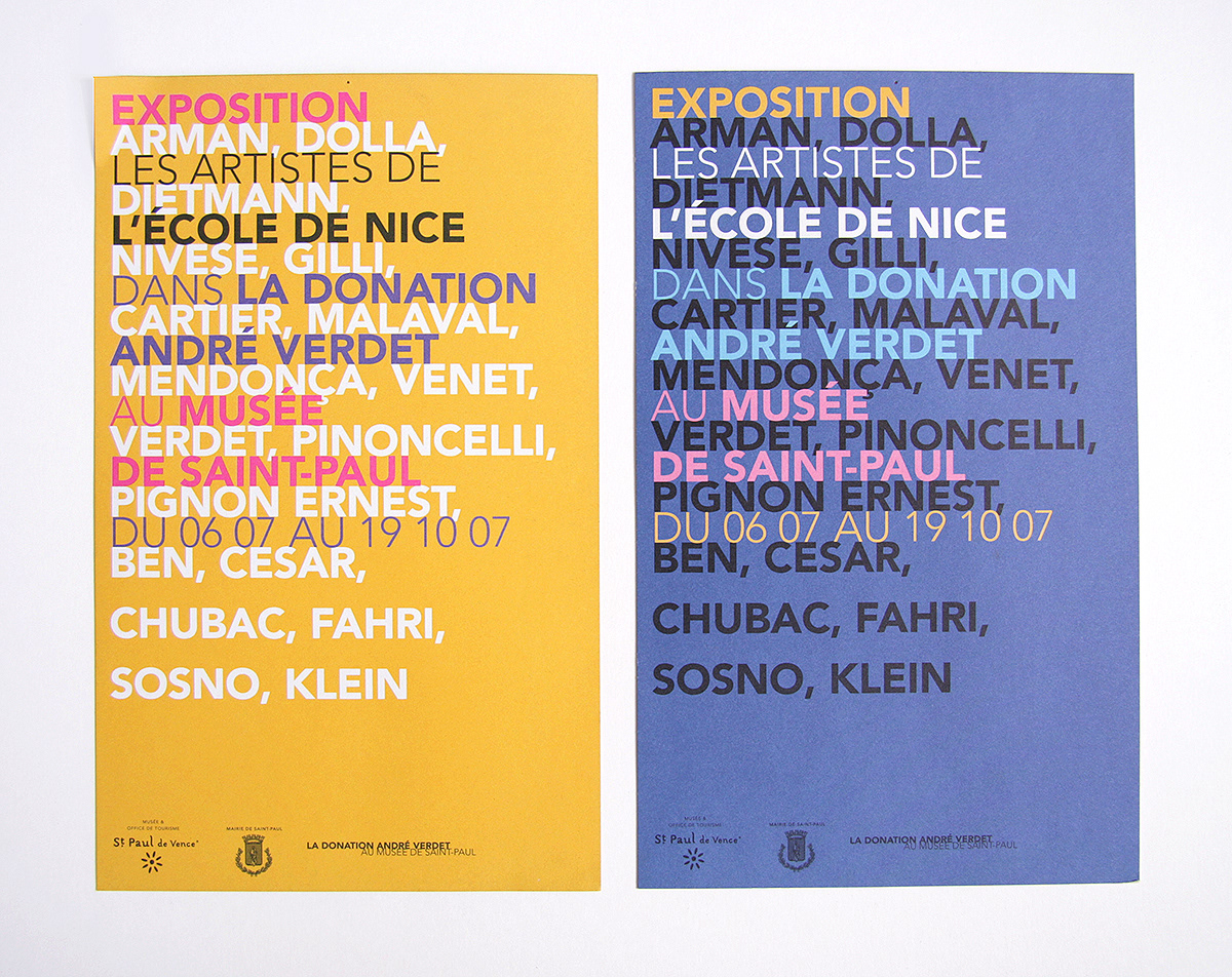Création de visuel pour l'exposition "Les artistes de Nice dans la Donation André Verdet" au Musée de Saint-Paul de Vence. Affiche, invitation, flyer.