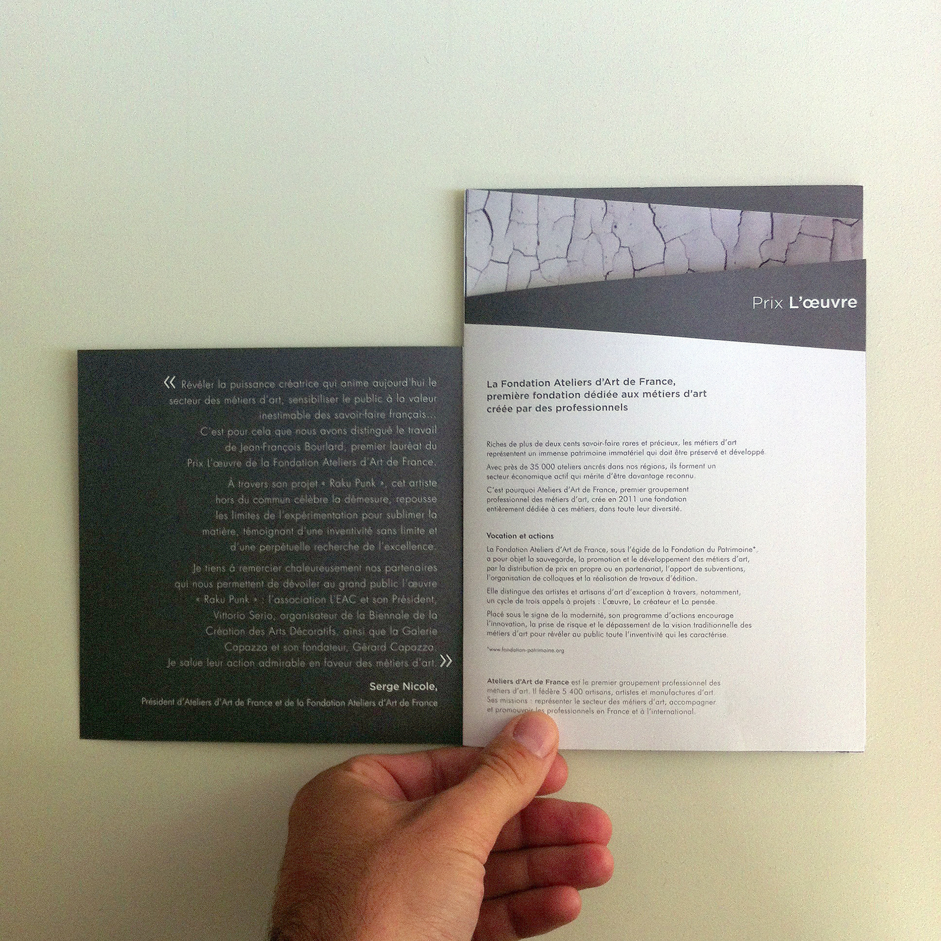 Brochure présentant l'œuvre et le lauréat du Prix Fondation Ateliers d'Art de France.