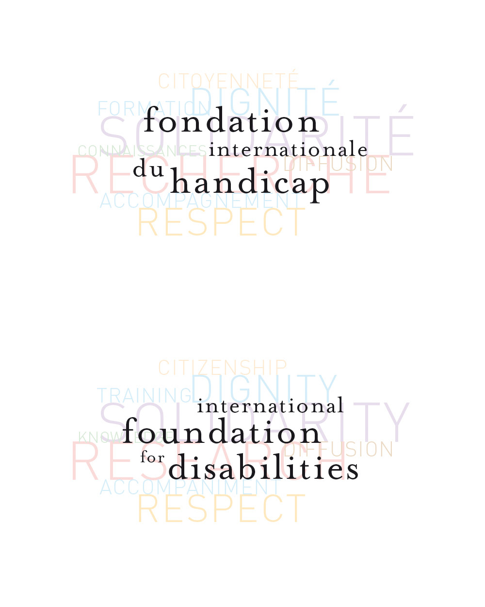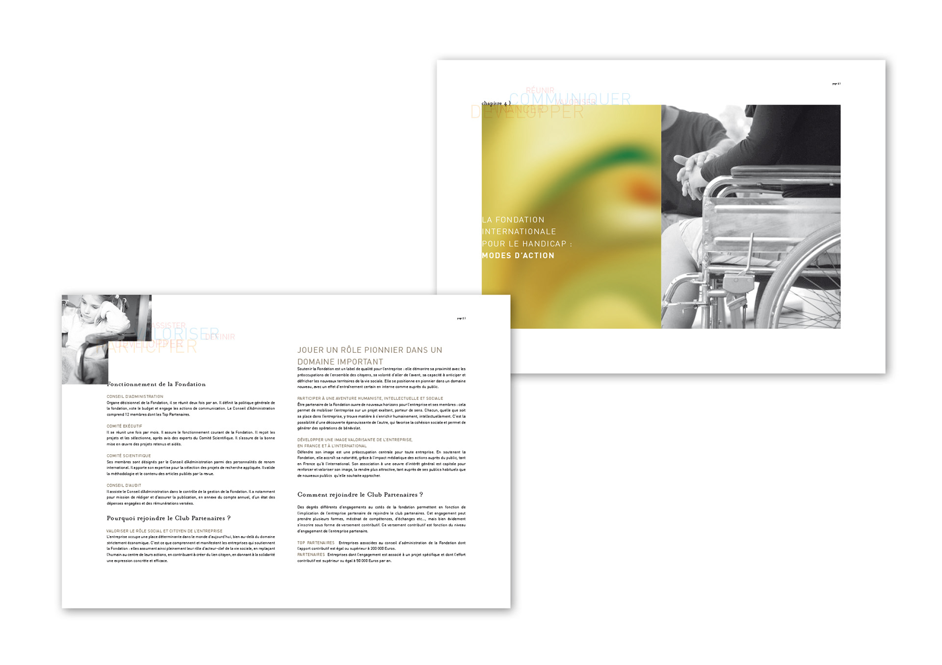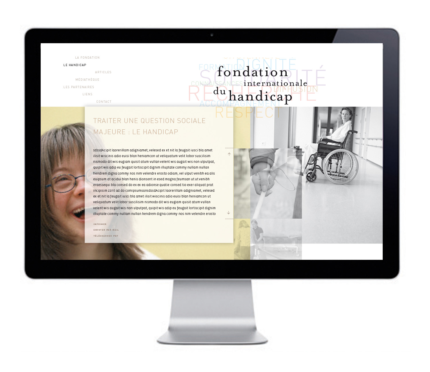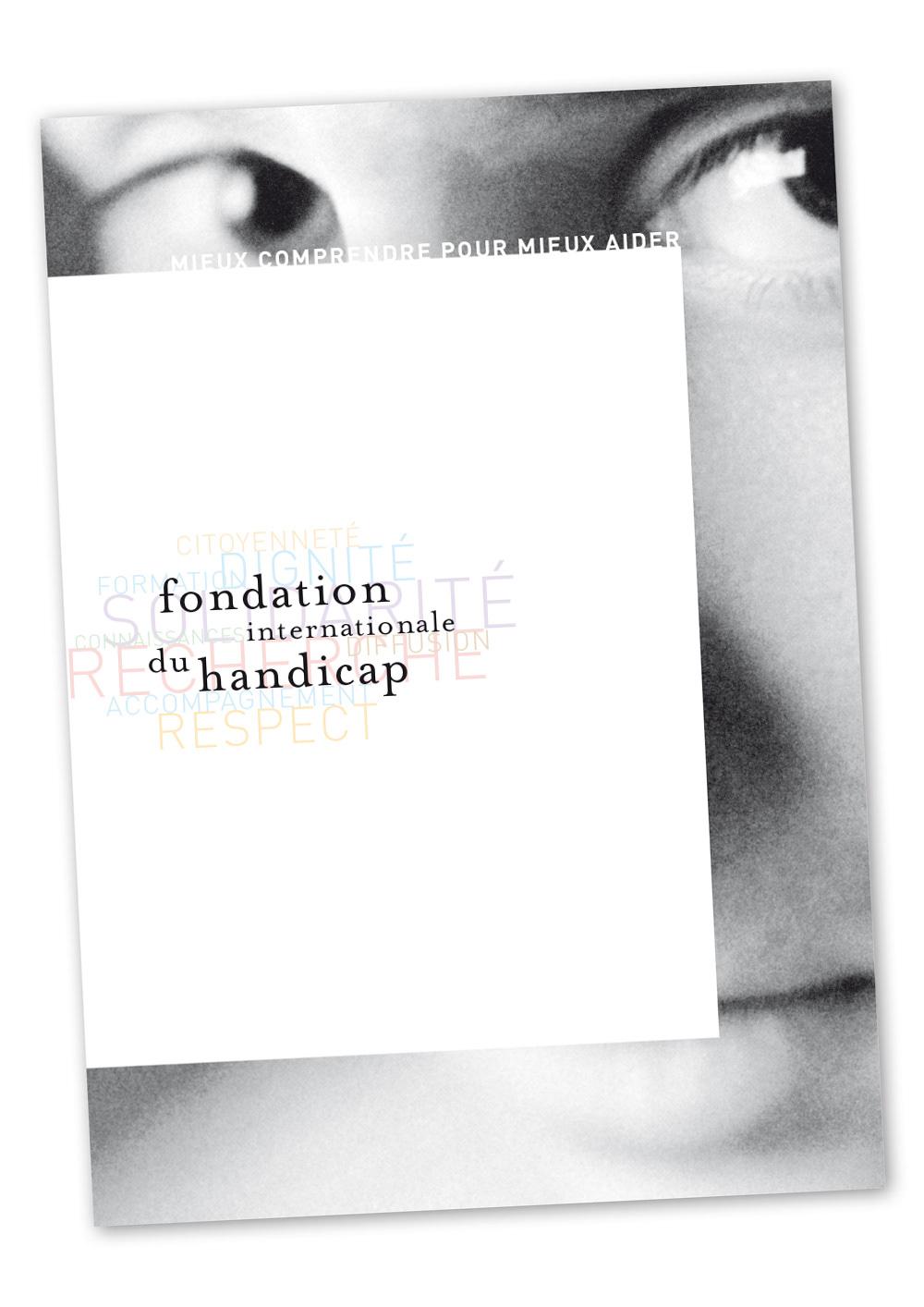 Identité visuelle pour la Fondation Internationale du Handicap. Conception de logotype, brochure de présentation, papeterie, direction artistique du site internet.