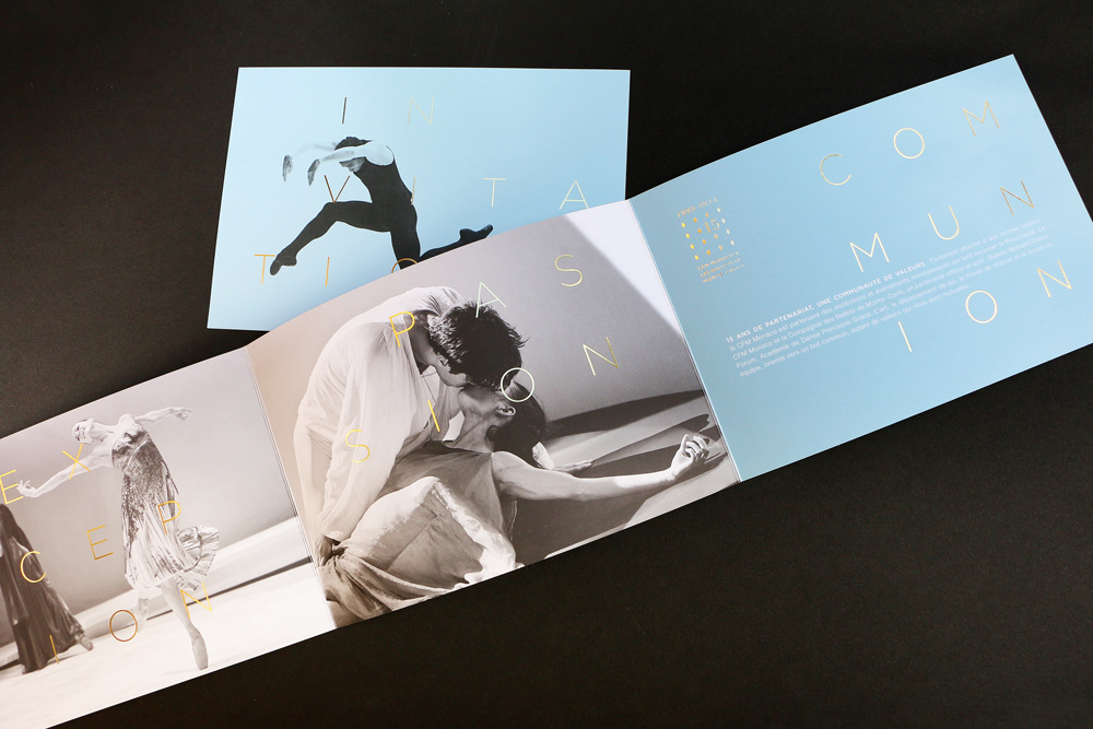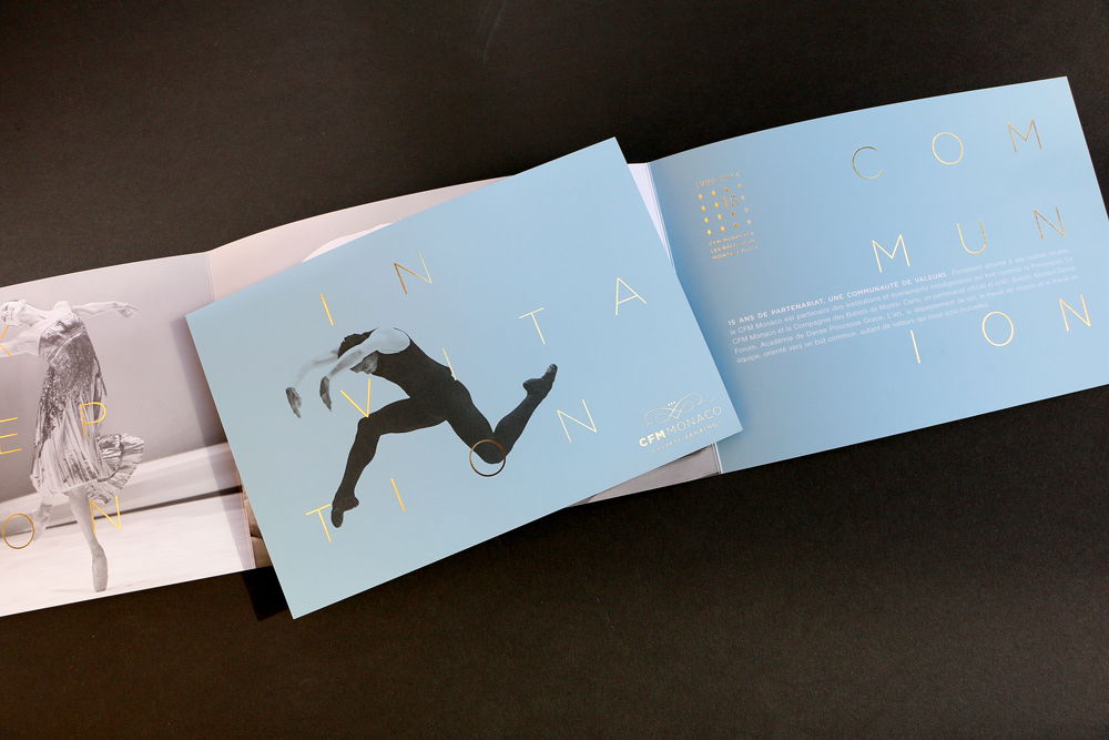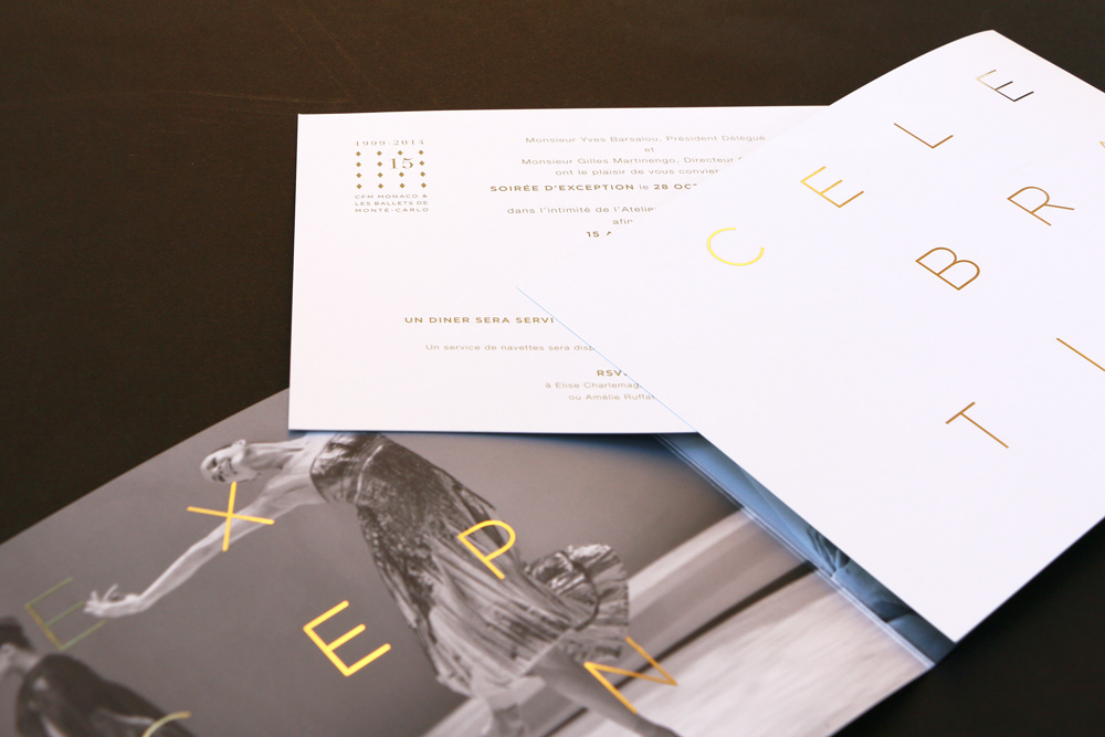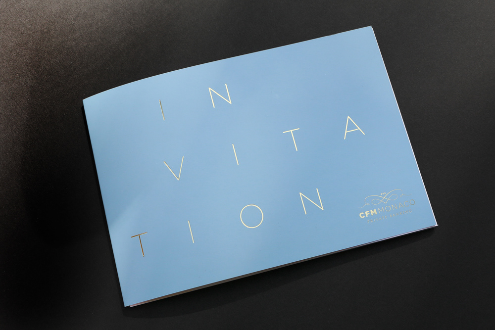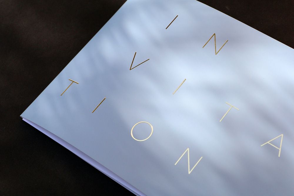 Carton d'invitation édité en tirage limité à 100 ex pour une soirée d'exception et de célébration, réservée à une clientèle de banque privée. Dorure à chaud sur pelliculage peau de pèche.