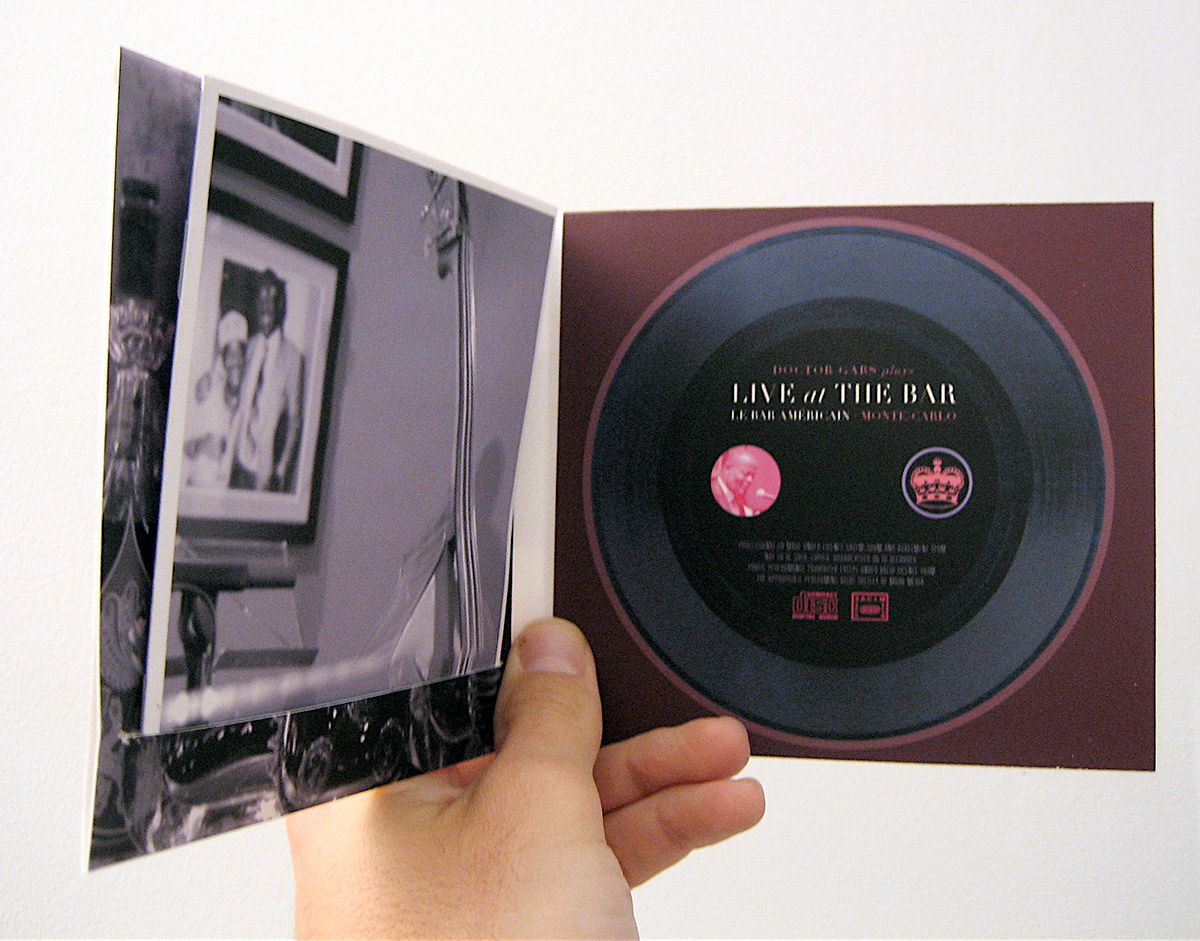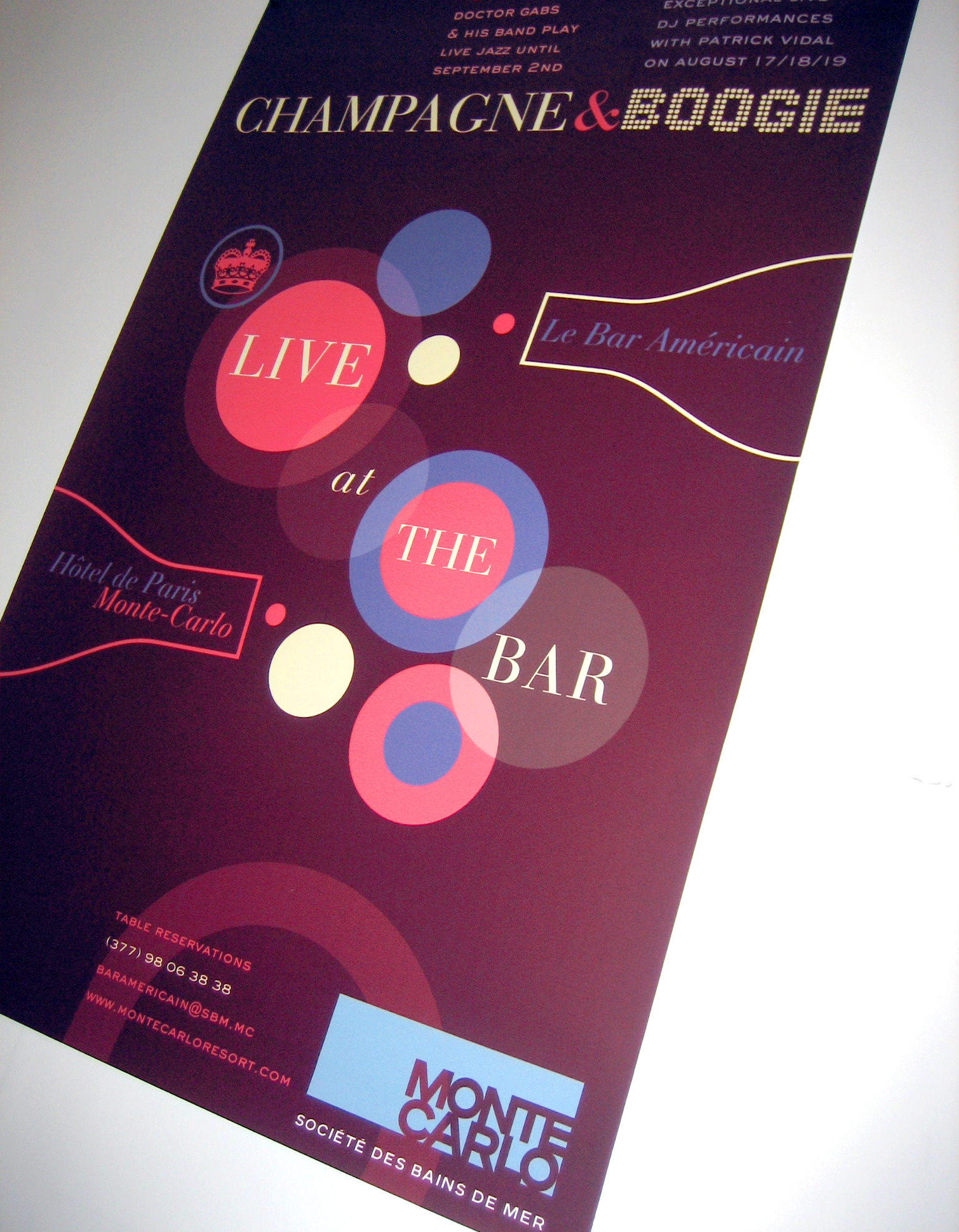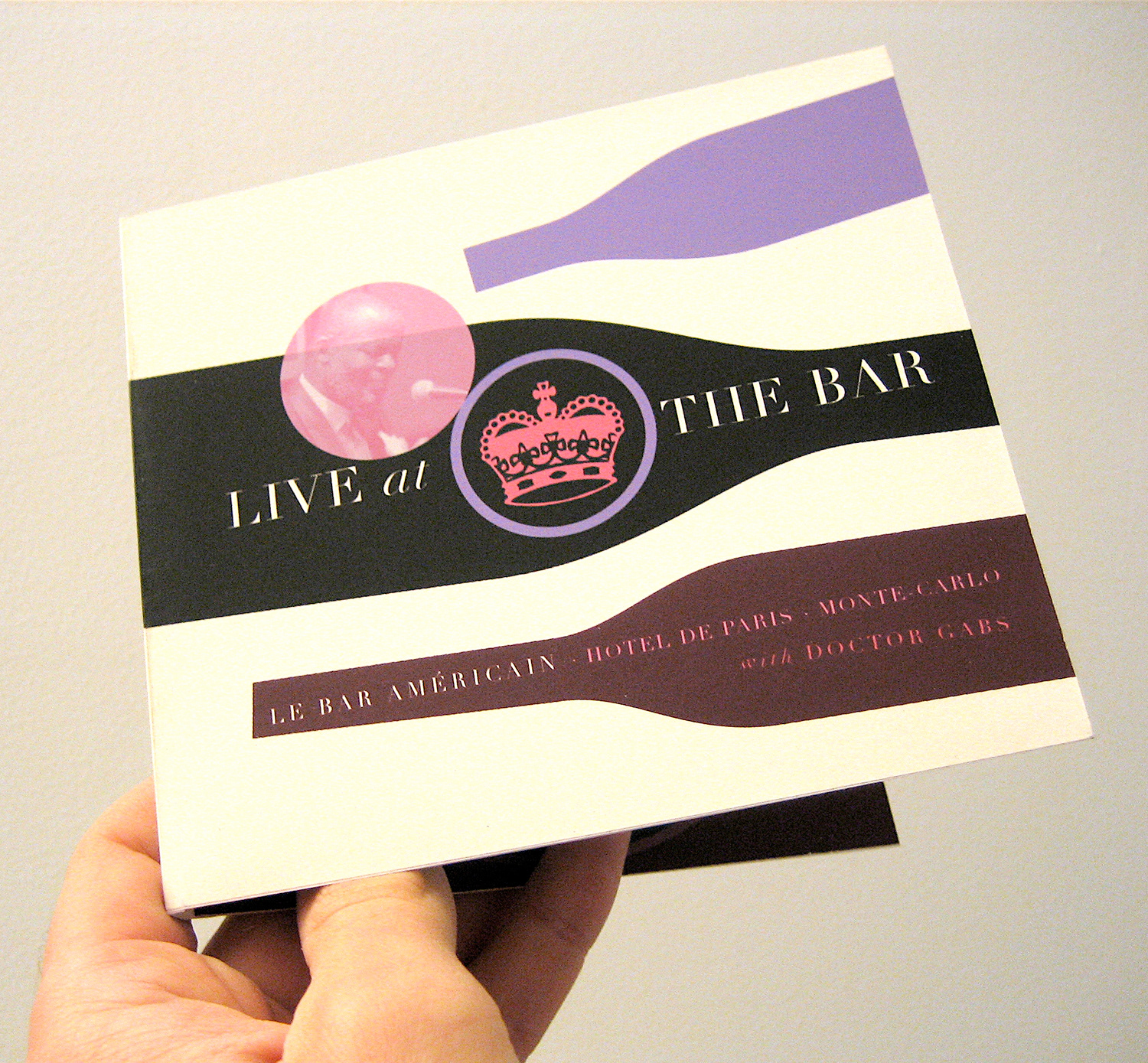 Pour le Bar Américain du mythique Hôtel de Paris Monte-Carlo, conception de CD 'Live at the Bar with Doctor Gabs', et affiche pour la série de concerts jazz organisées dans le Bar.