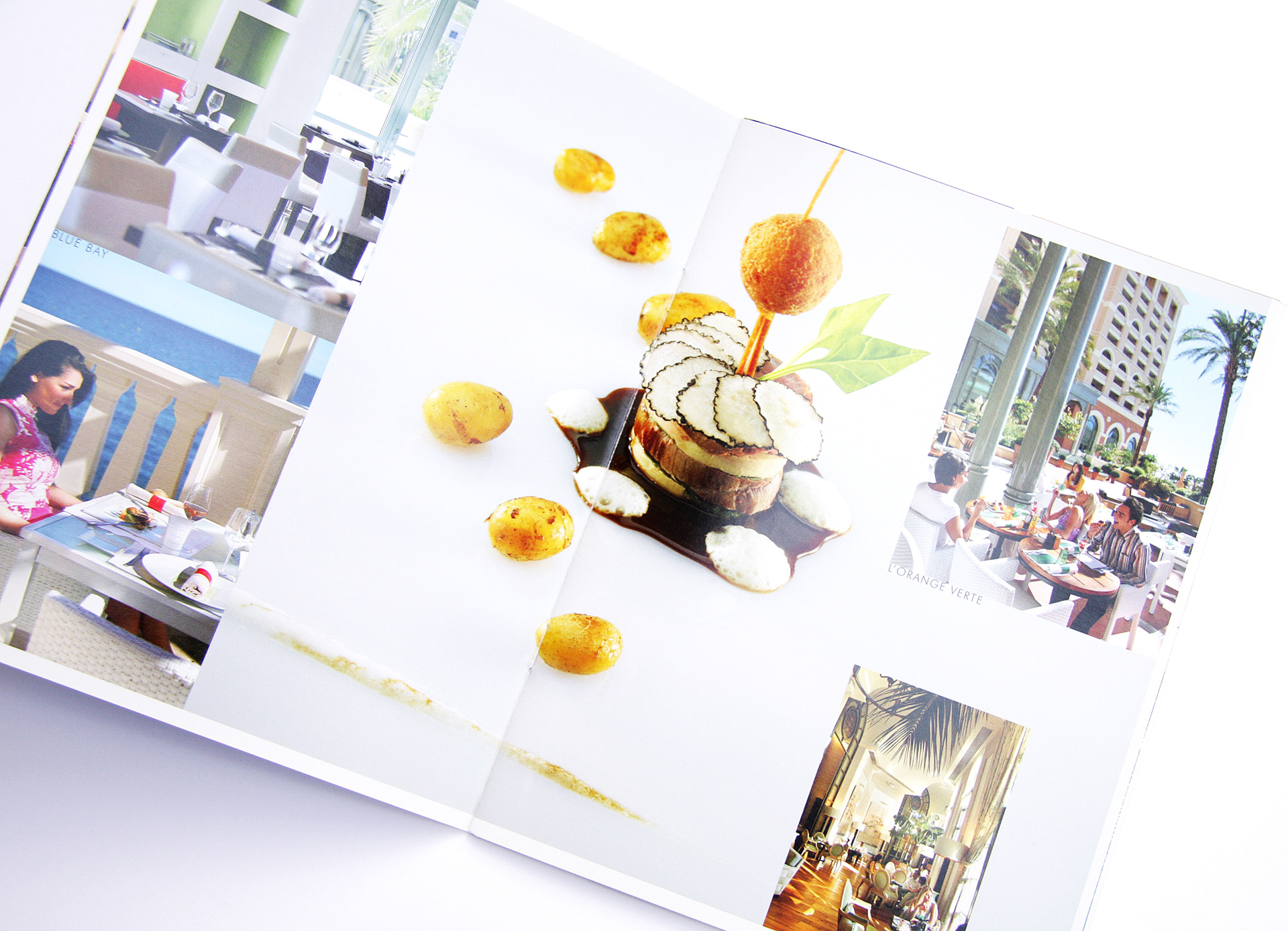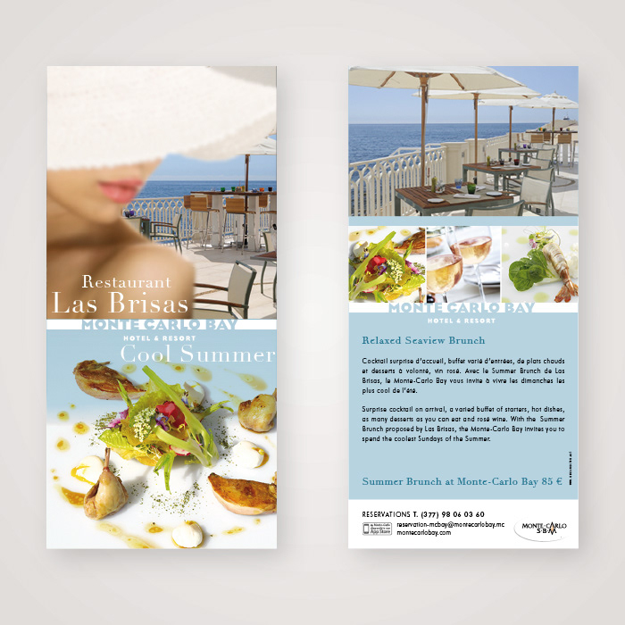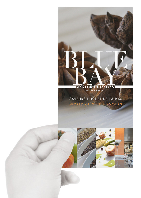 Conception de brochure de présentation pour le Monte Carlo Bay Hotel & Resort. Affiches et flyers pour le restaurant Blue Bay.