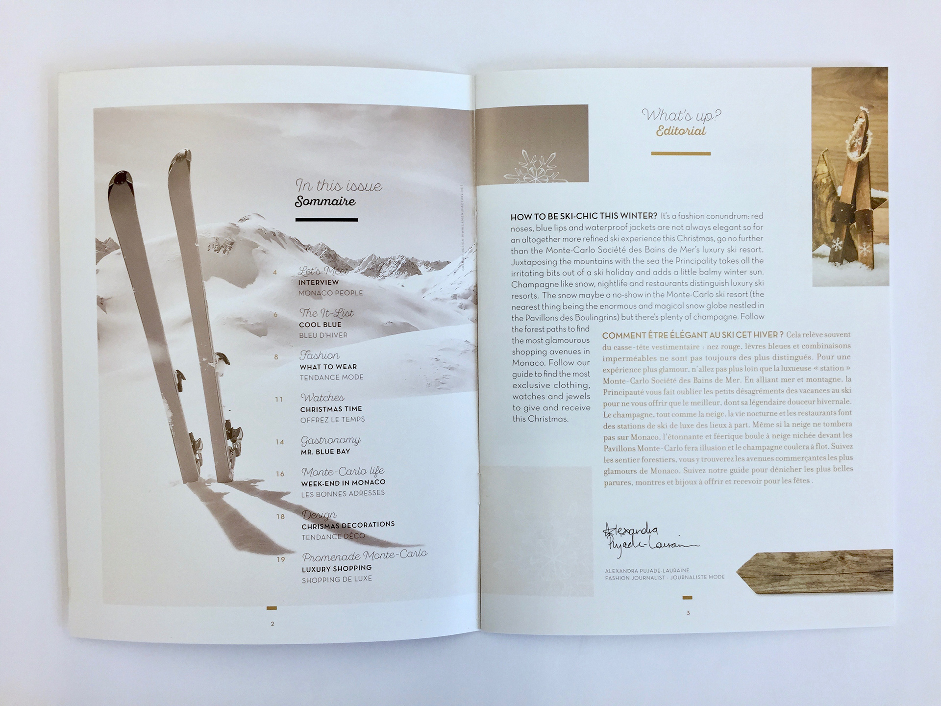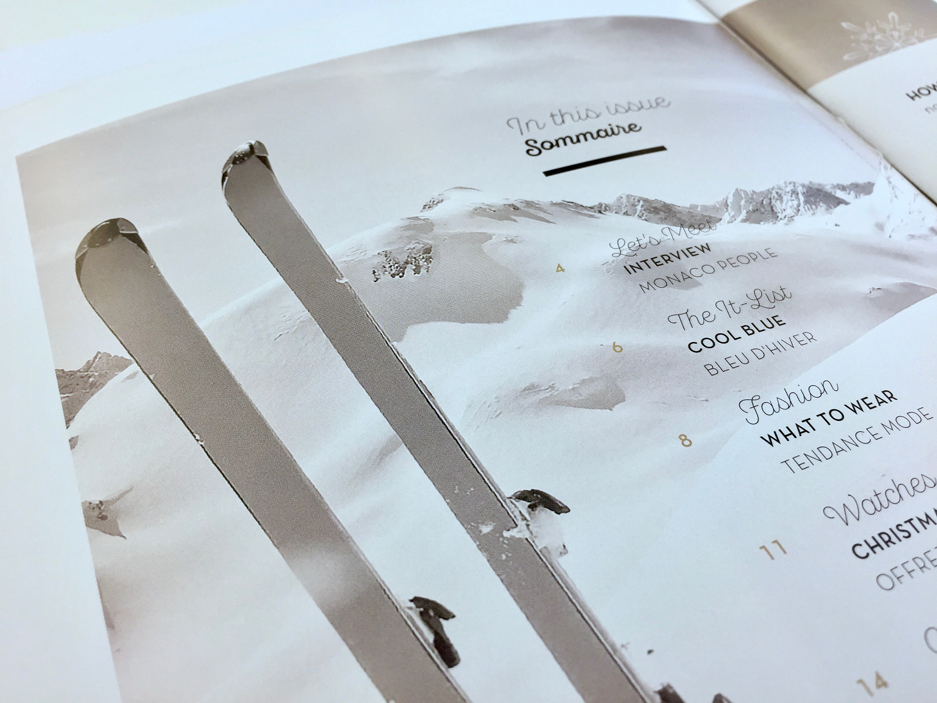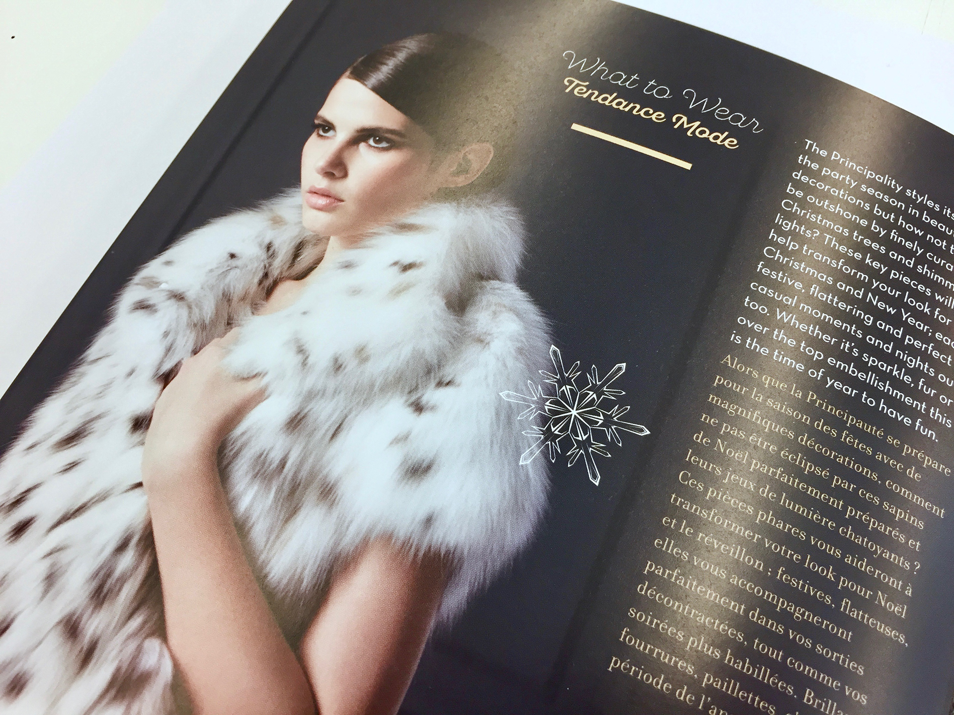 Conception graphique et éditoriale pour un magazine hors-série, édité pour promouvoir le shopping d'hiver à Monte-Carlo.
