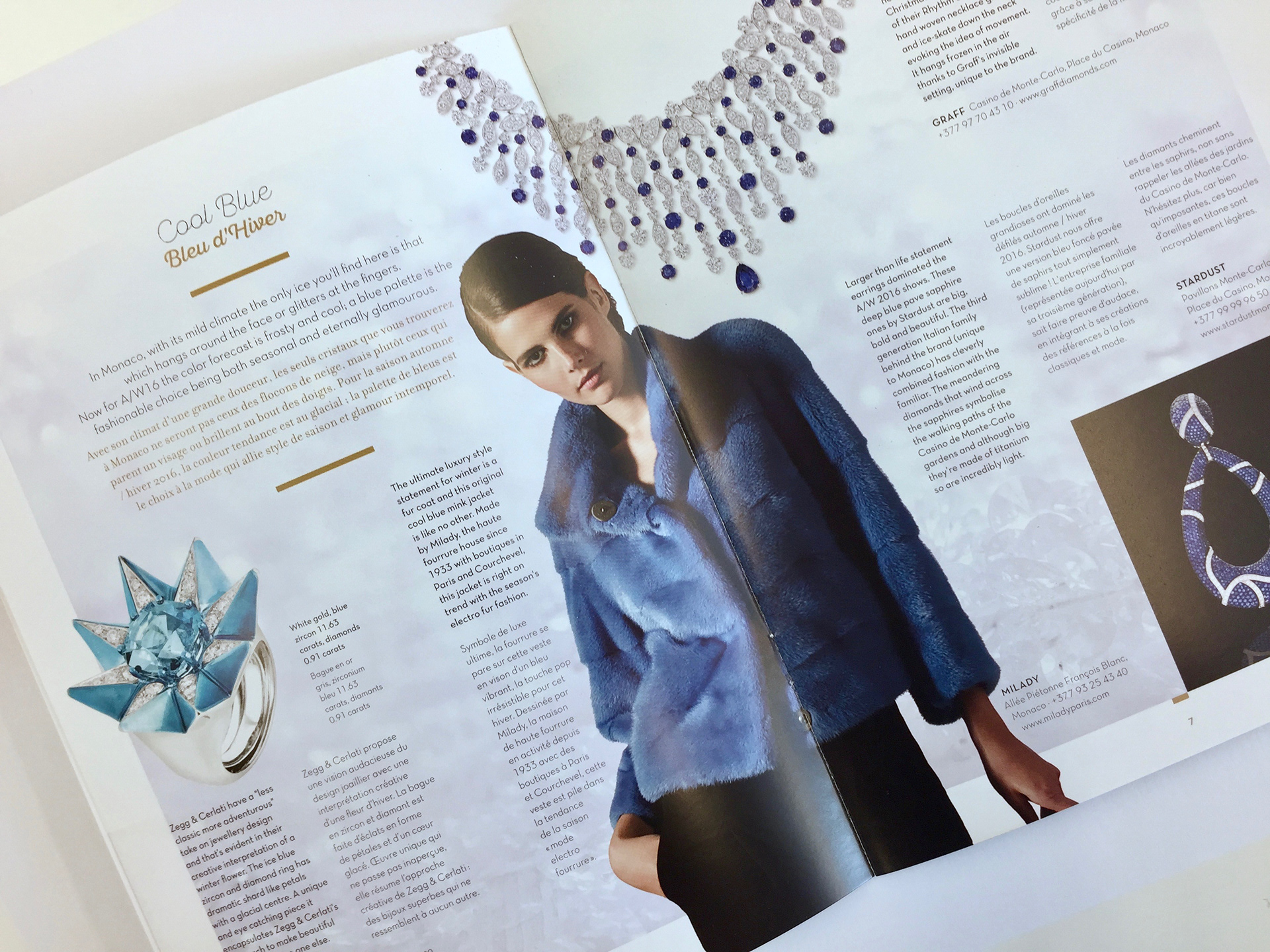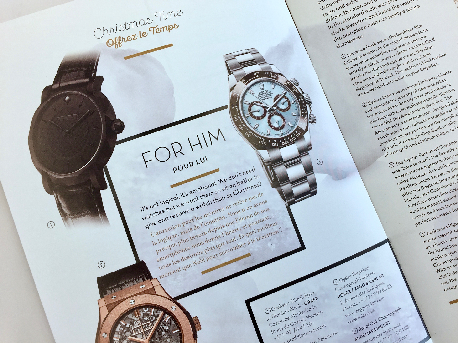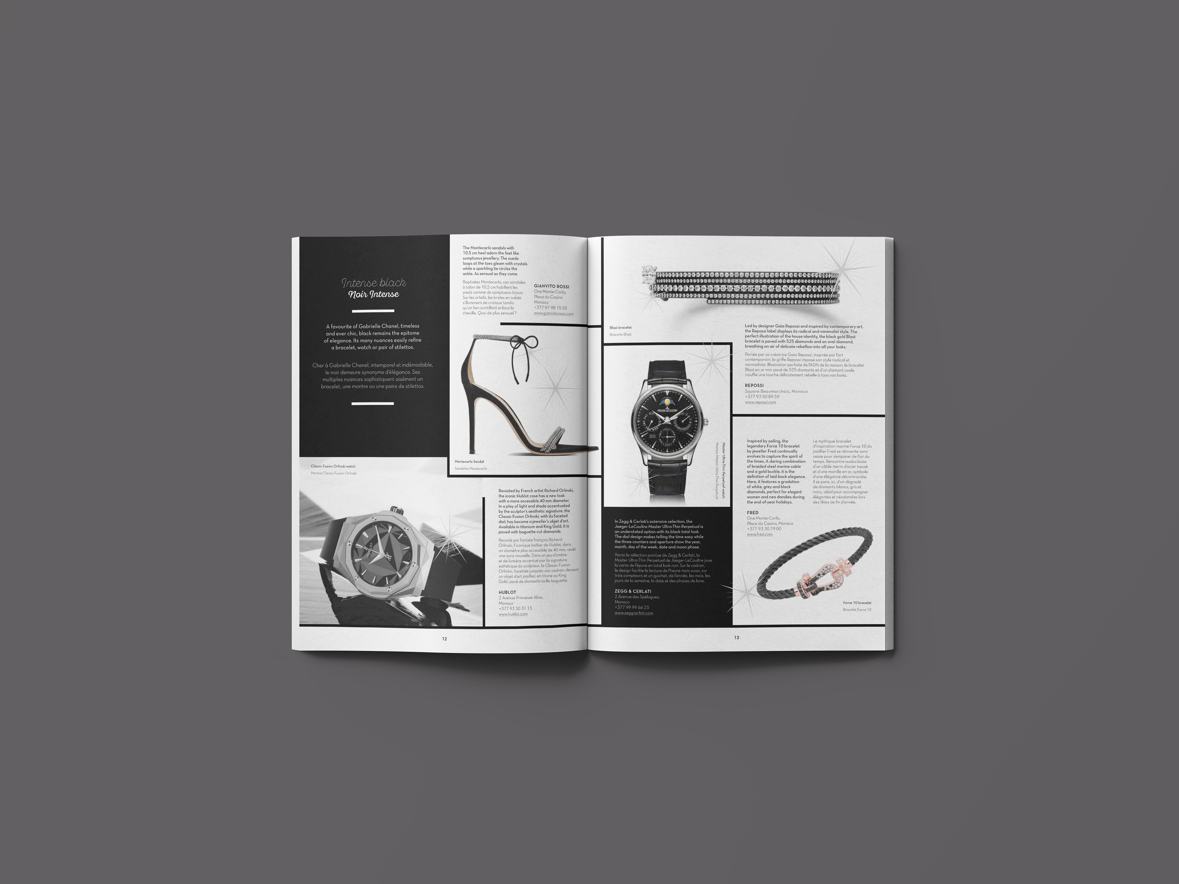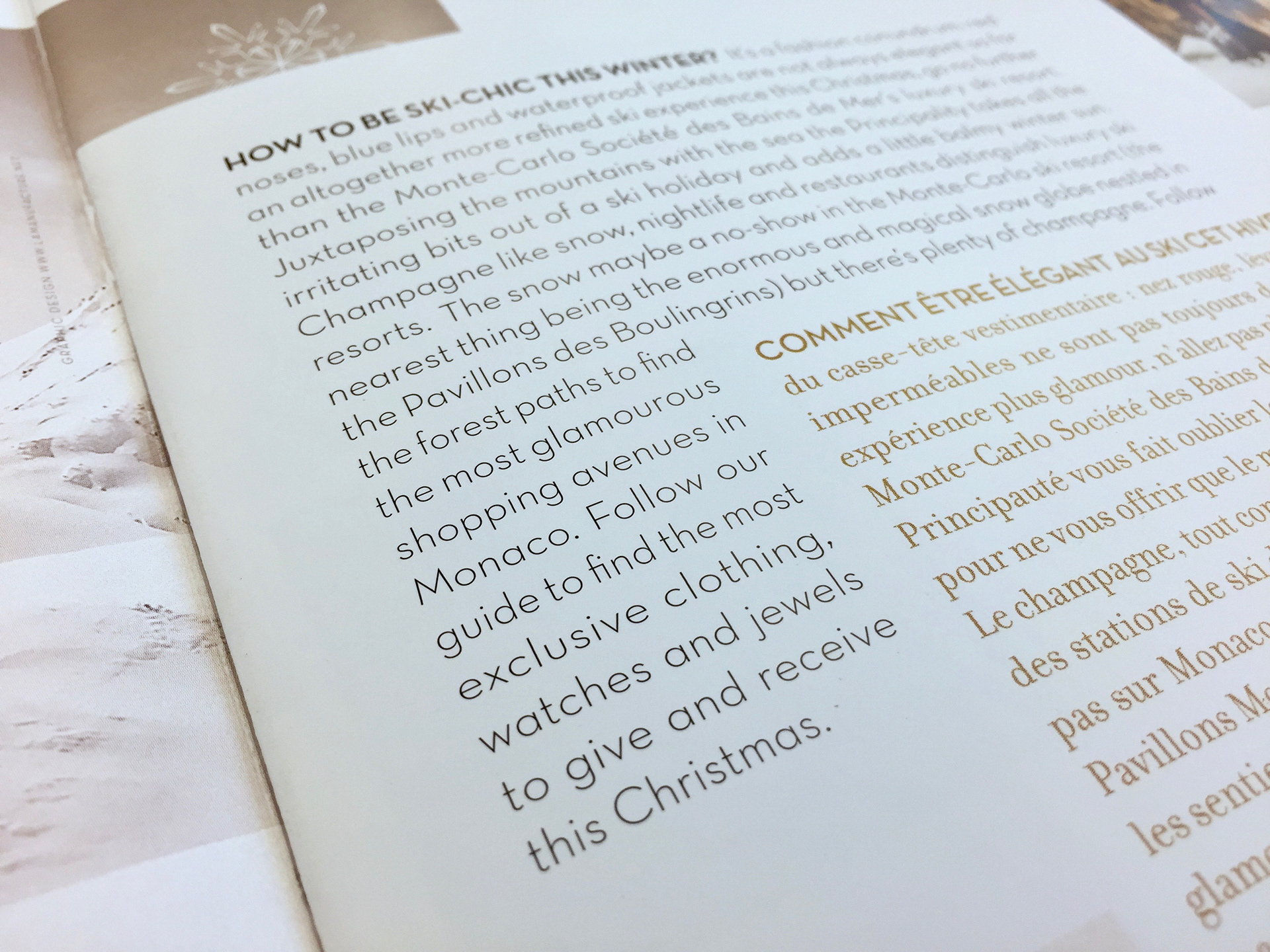 Conception graphique et éditoriale pour un magazine hors-série, édité pour promouvoir le shopping d'hiver à Monte-Carlo.