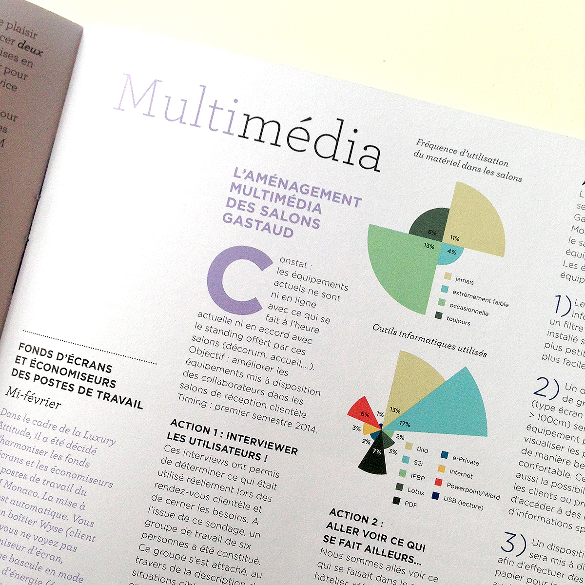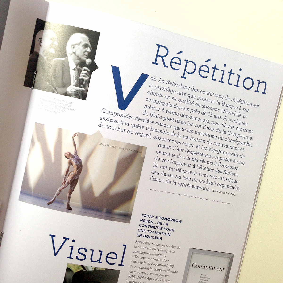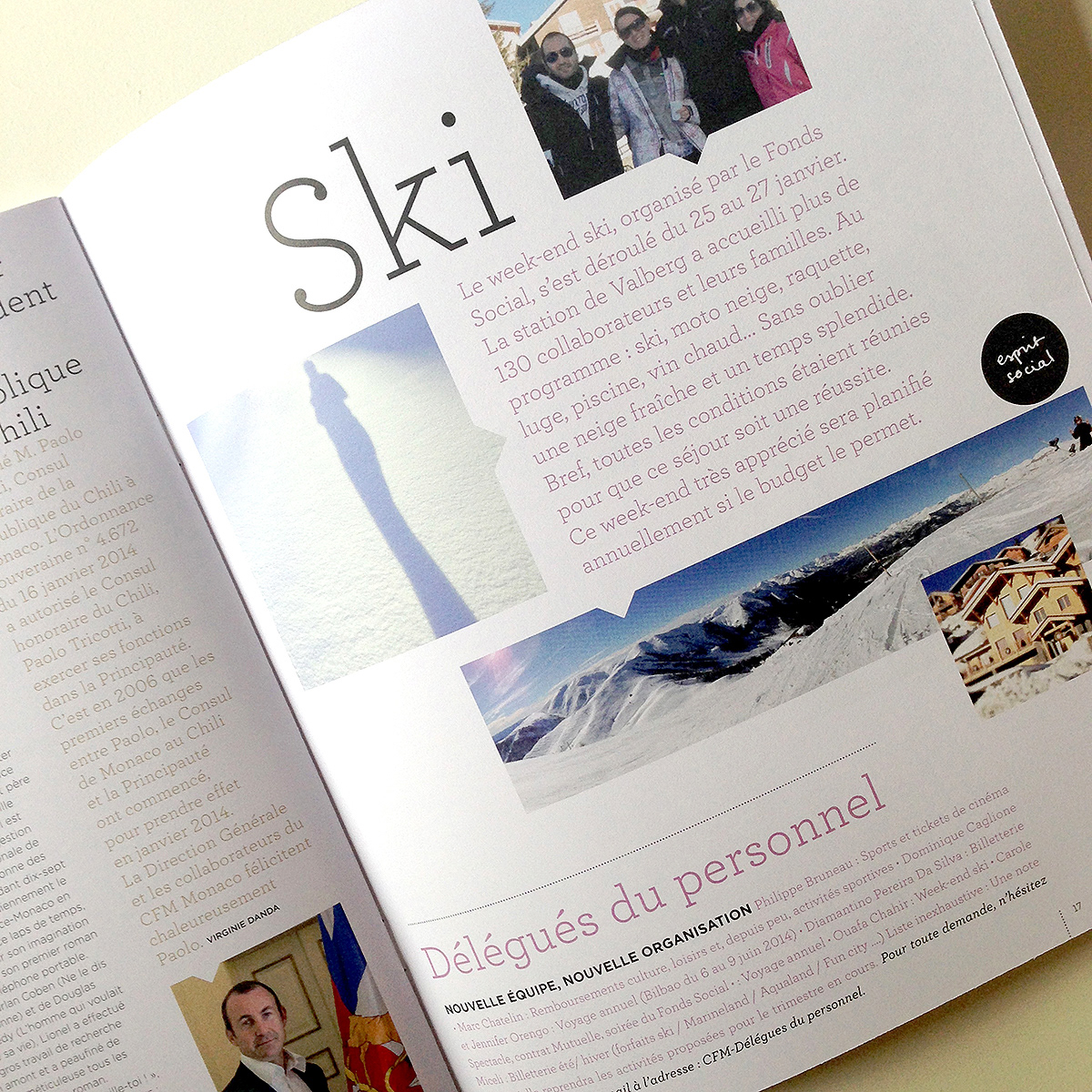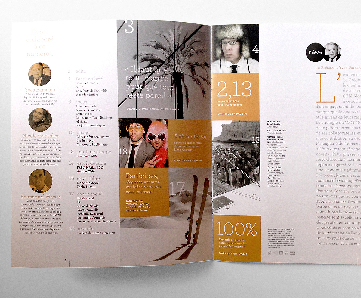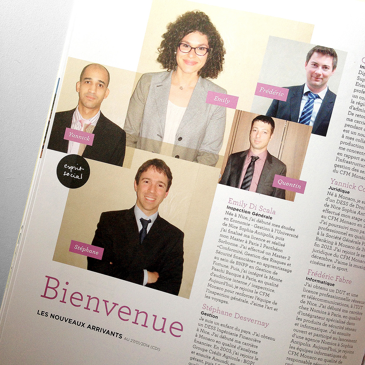 Conception graphique de newsletter interne, secteur bancaire. Quatre éditions par an.