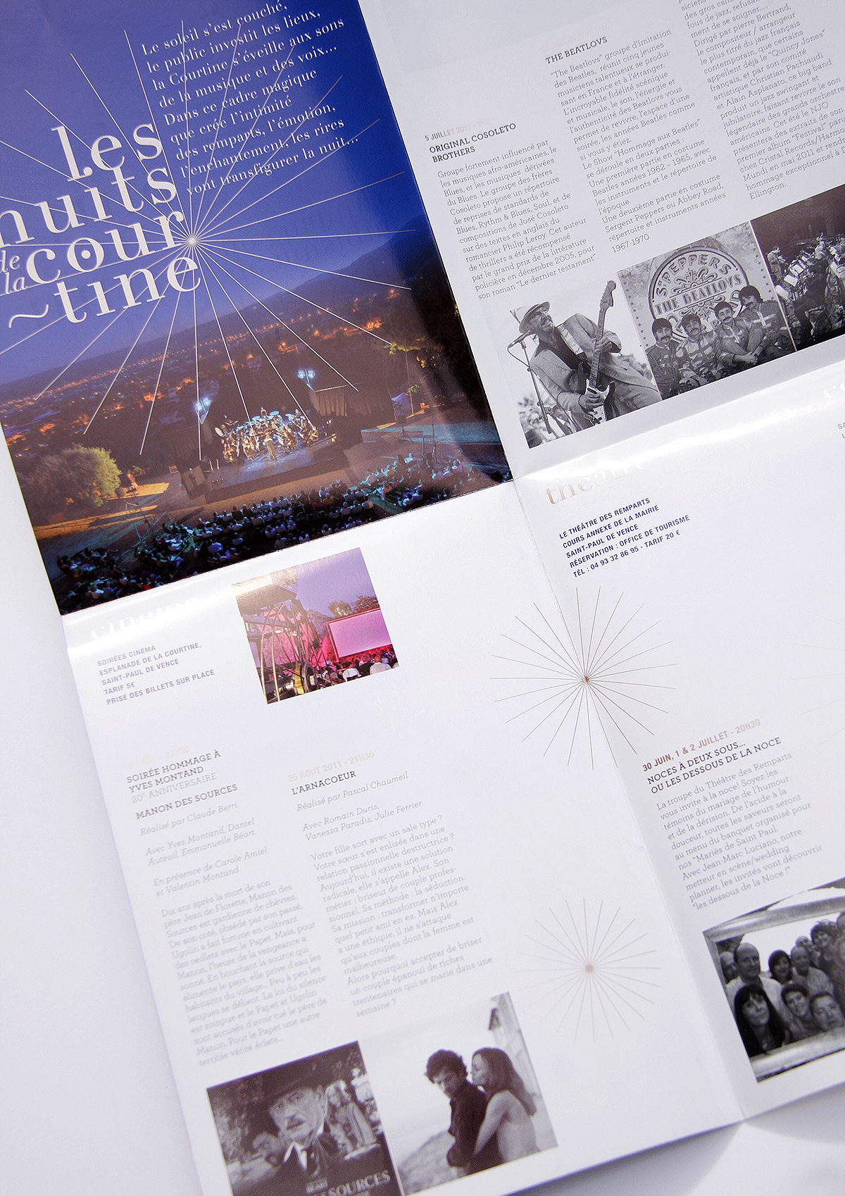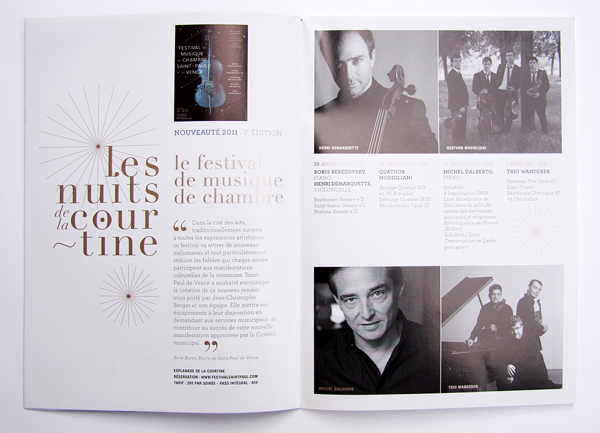 Conception de visuel et programme pour Les Nuits de La Courtine, concerts et spectacles organisés chaque été en plein air à Saint-Paul de Vence.