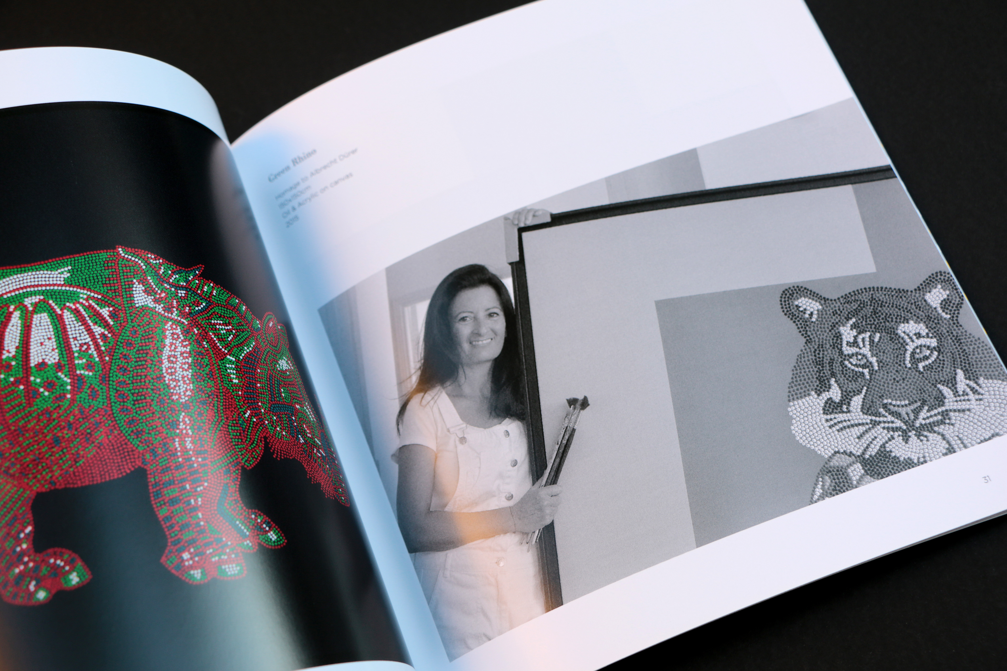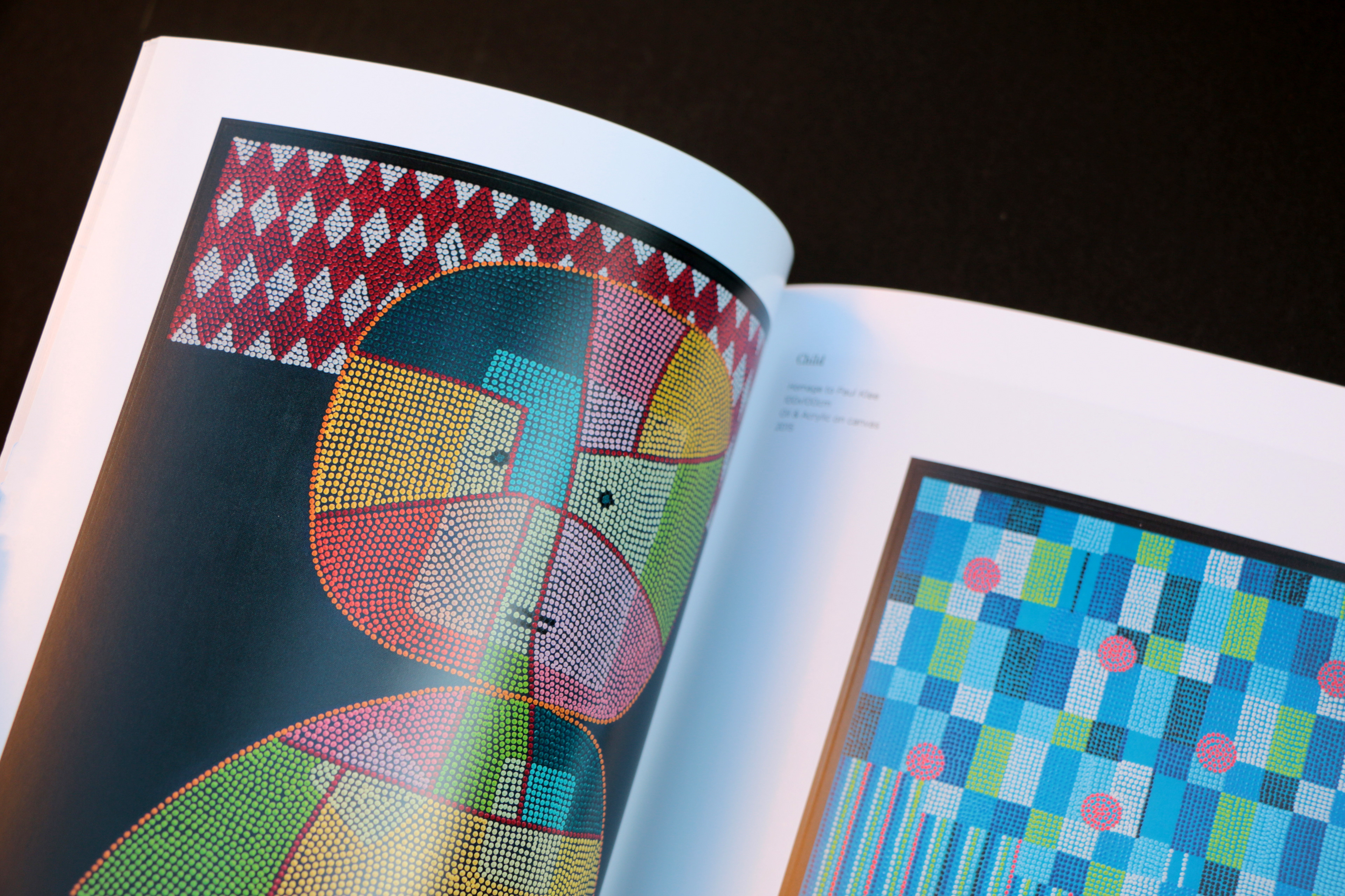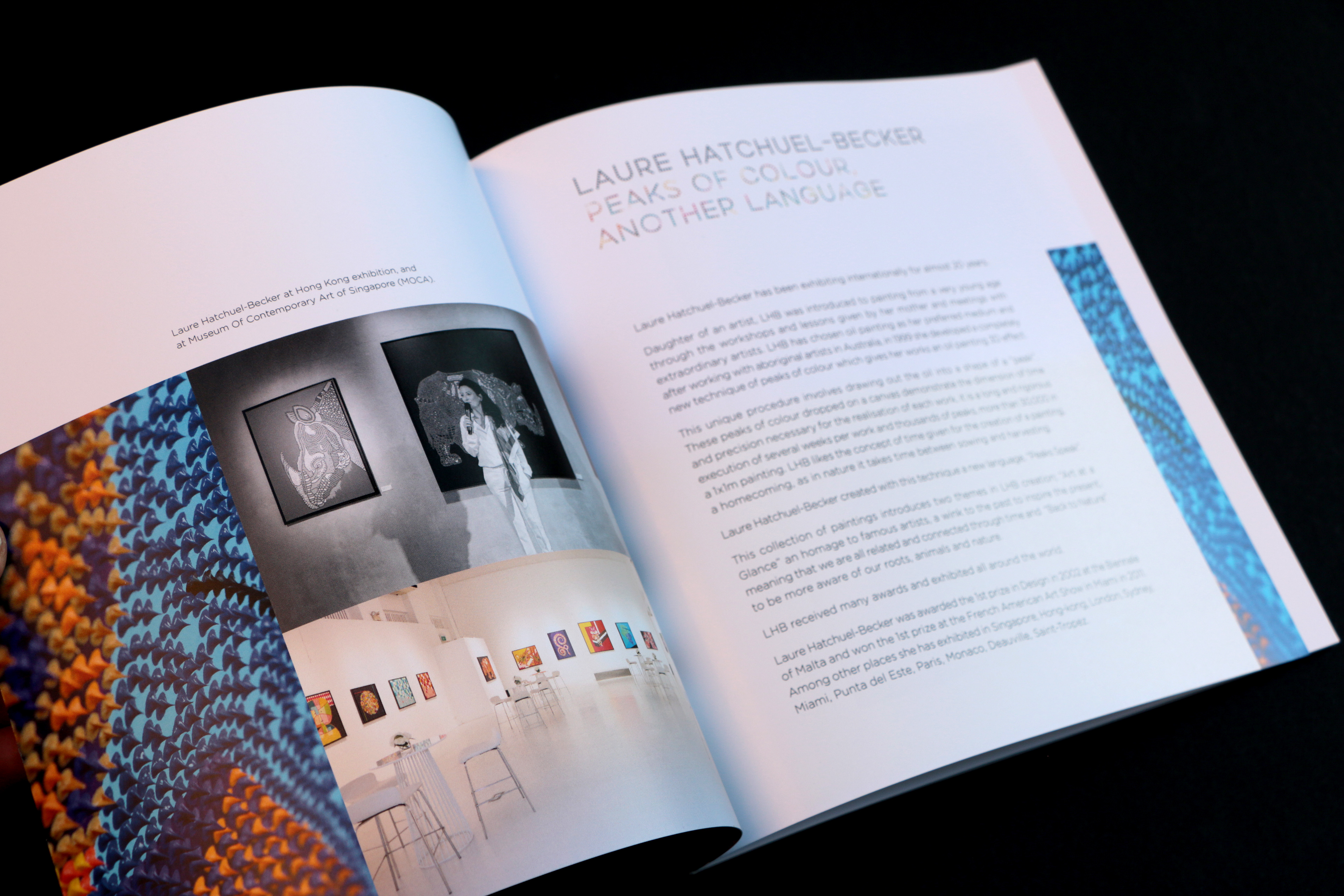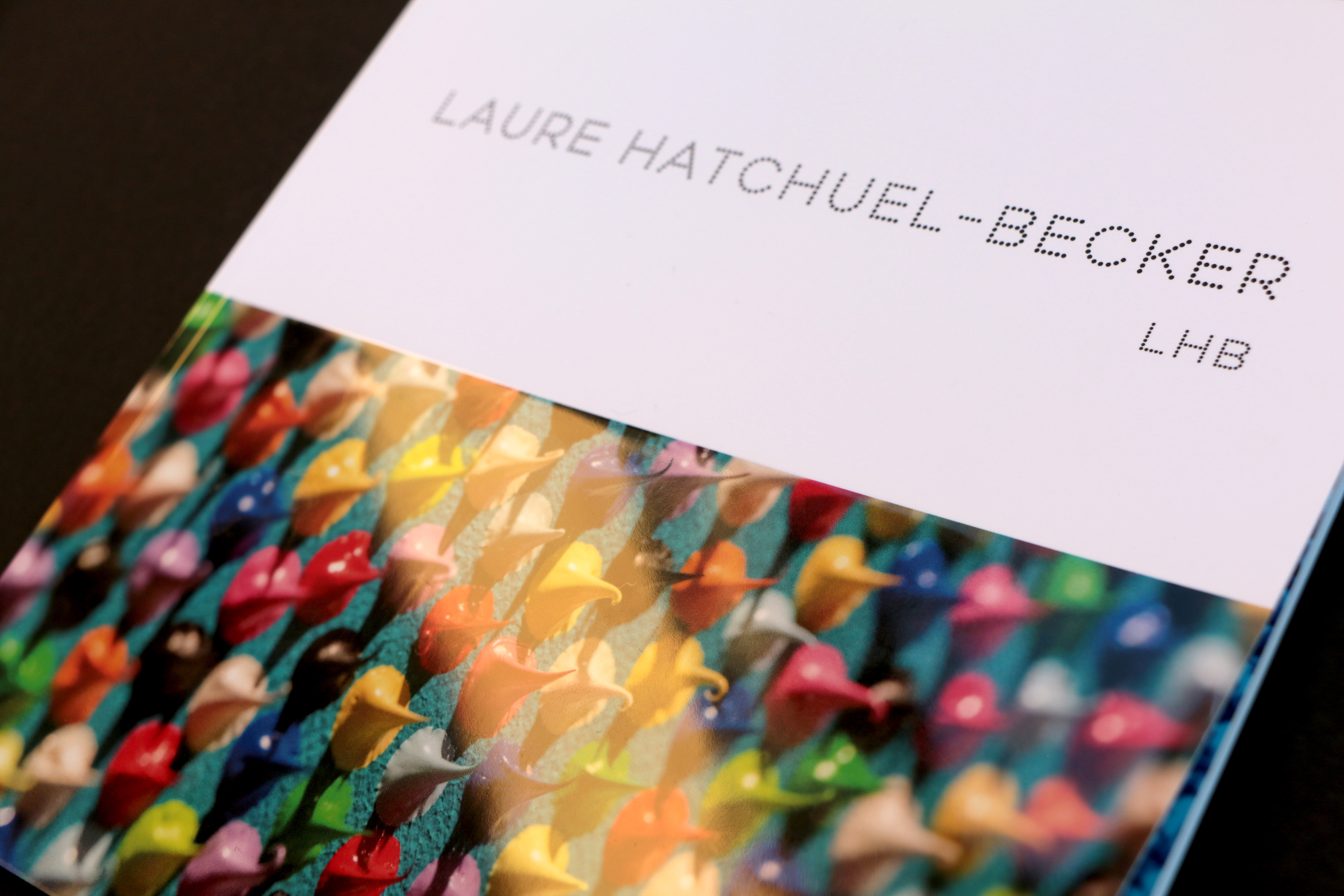 Inspiré directement par la technique particulière de l'artiste Laure Hatchuel-Becker, La Manufacture a conçu un catalogue sur-mesure où même la typographie se permet un clin d'oeil subtil à son œuvre…