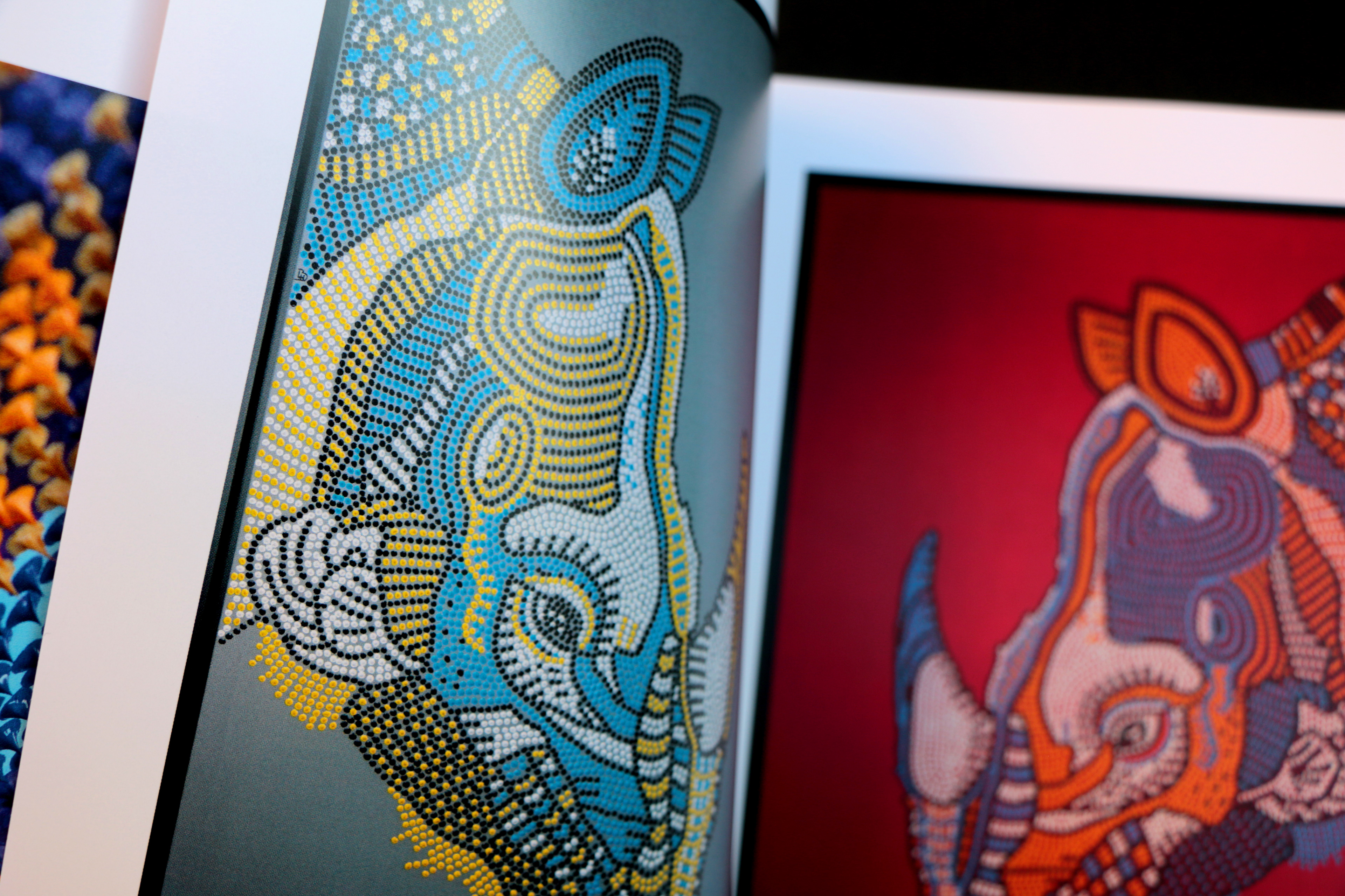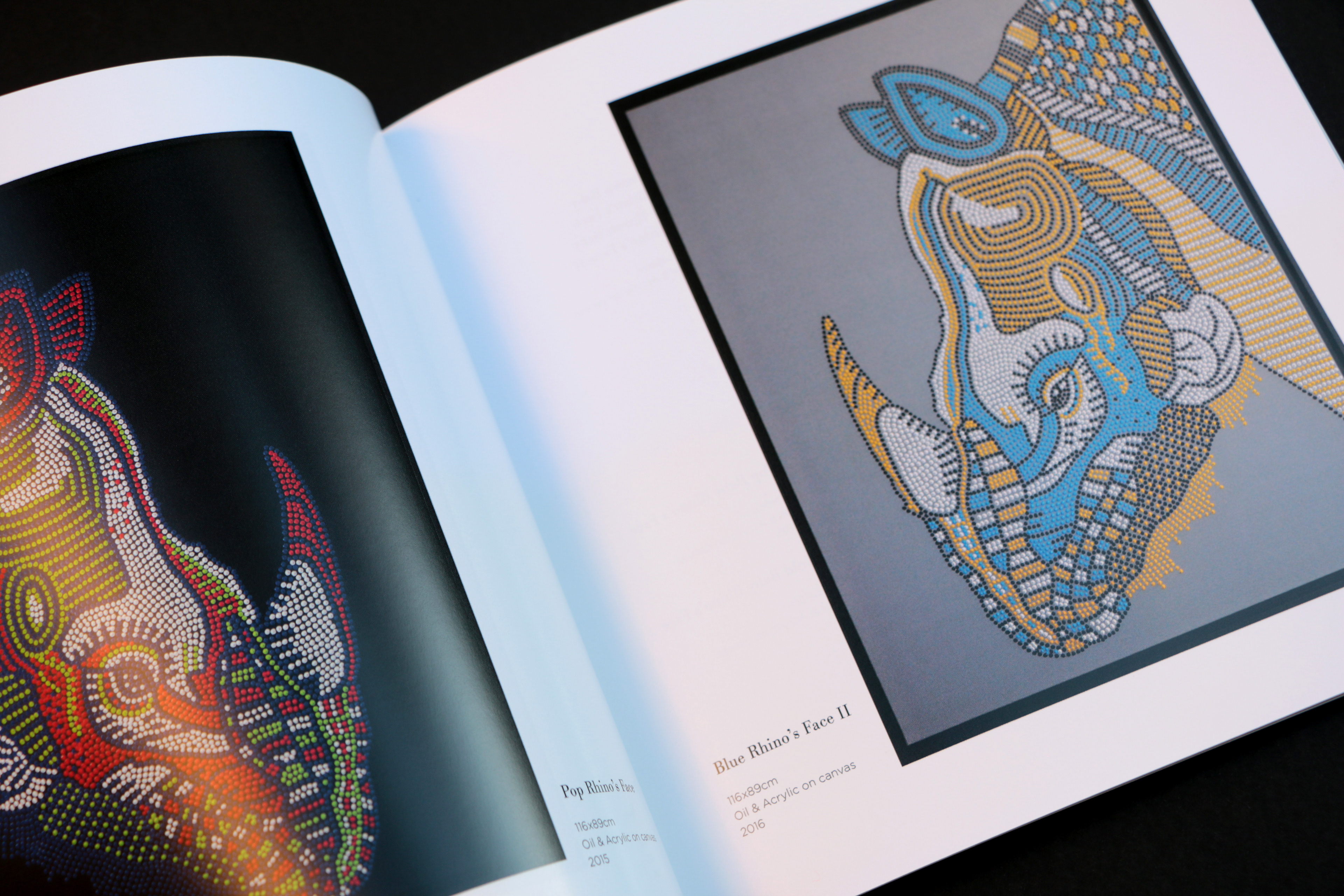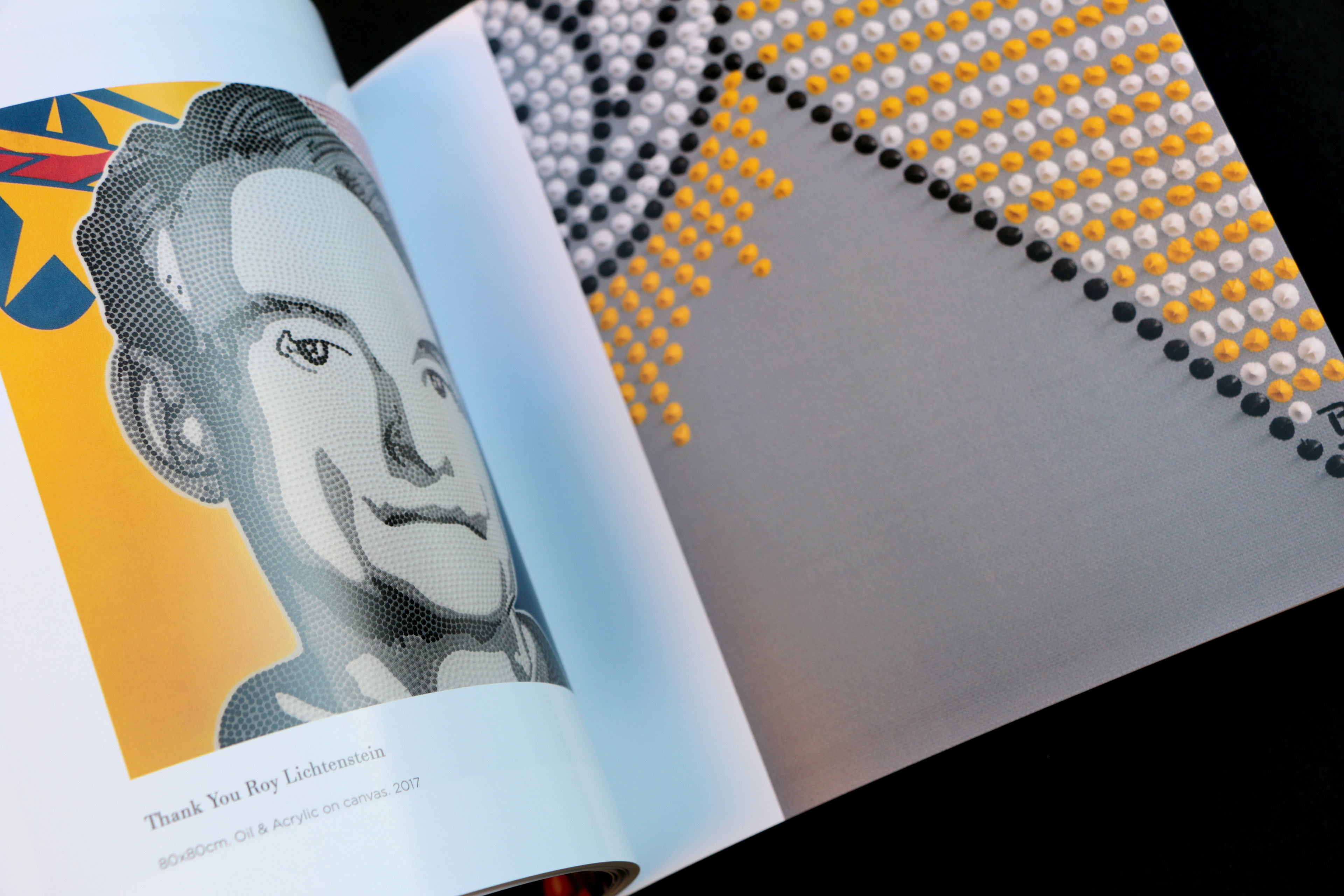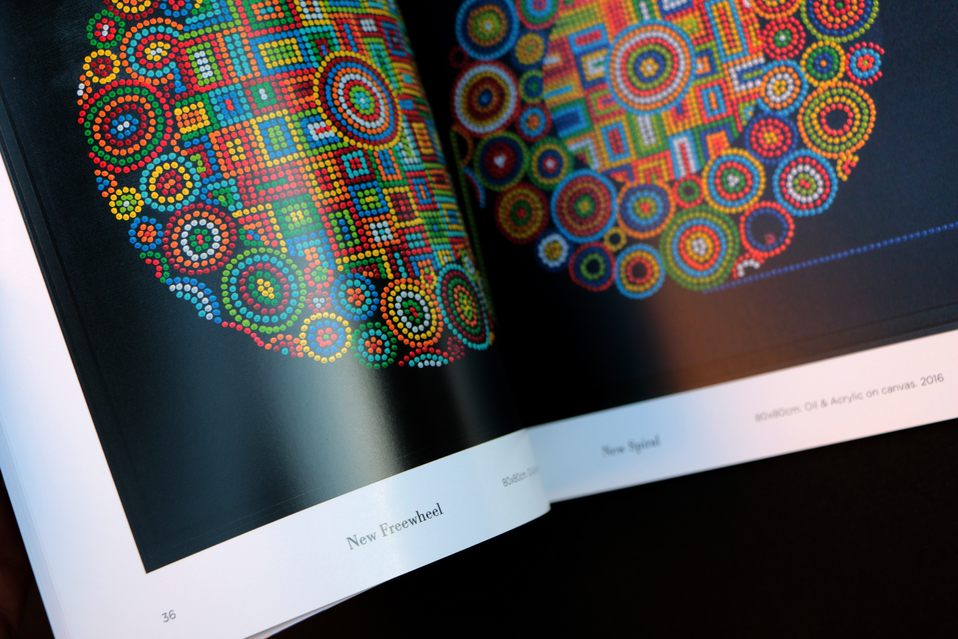 Inspiré directement par la technique particulière de l'artiste Laure Hatchuel-Becker, La Manufacture a conçu un catalogue sur-mesure où même la typographie se permet un clin d'oeil subtil à son œuvre…