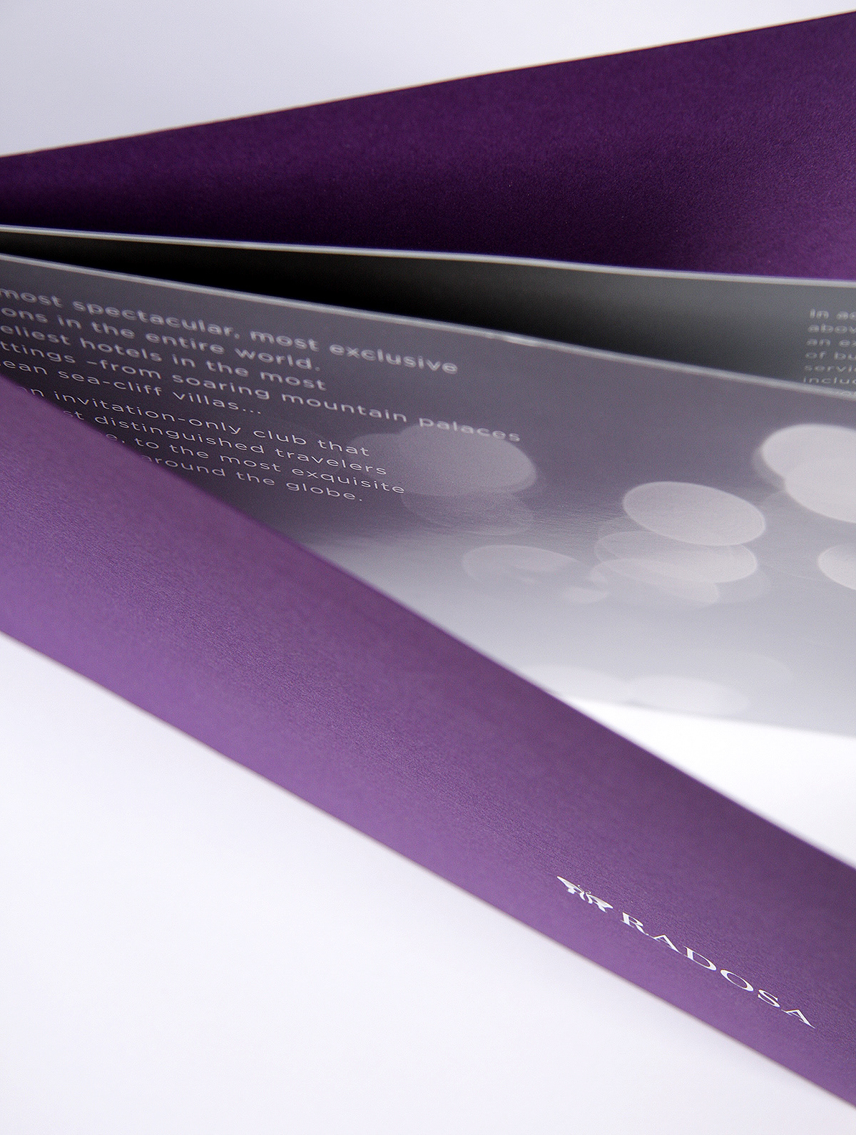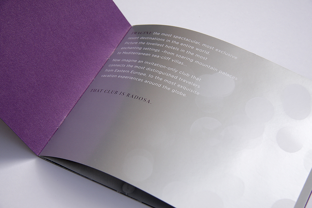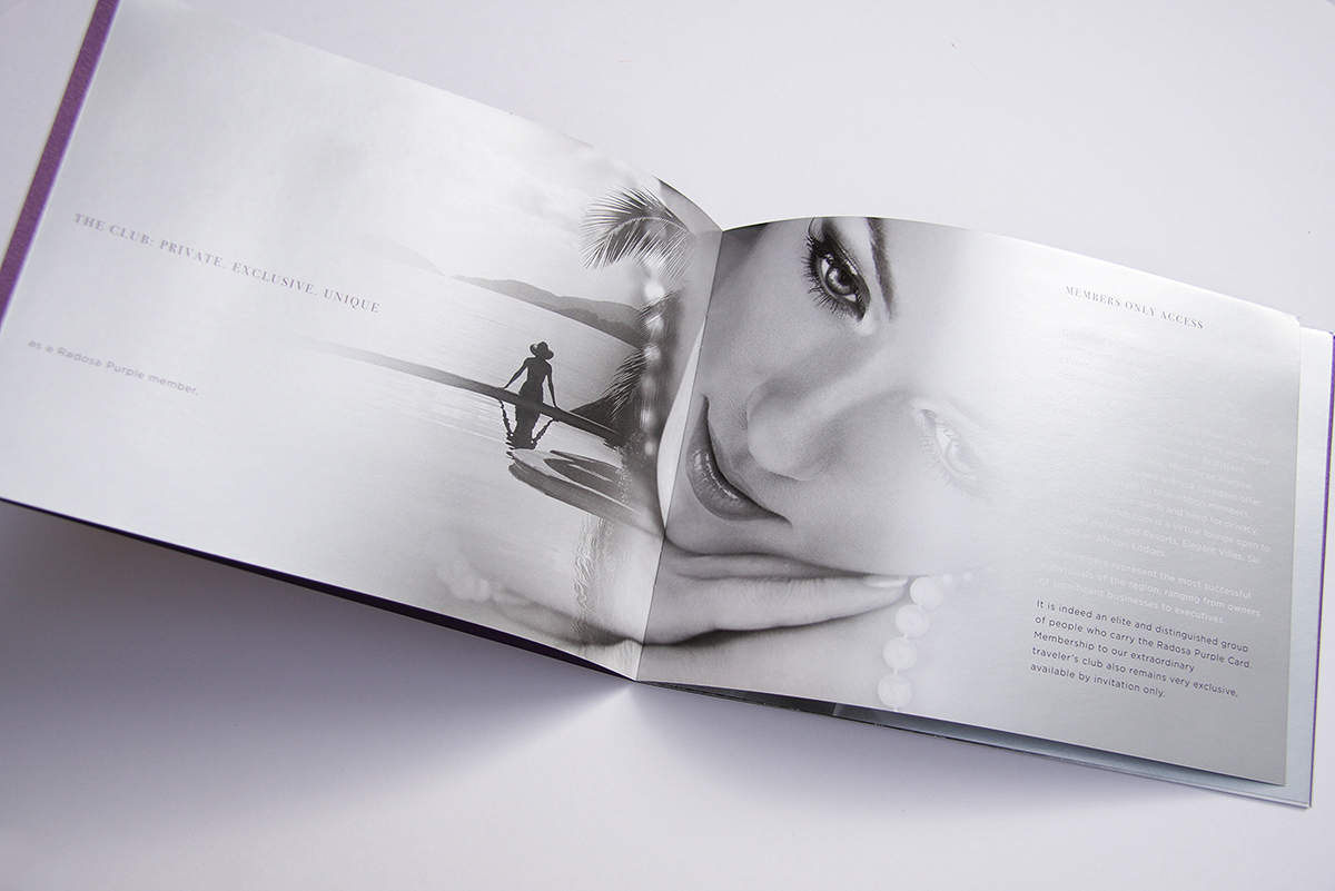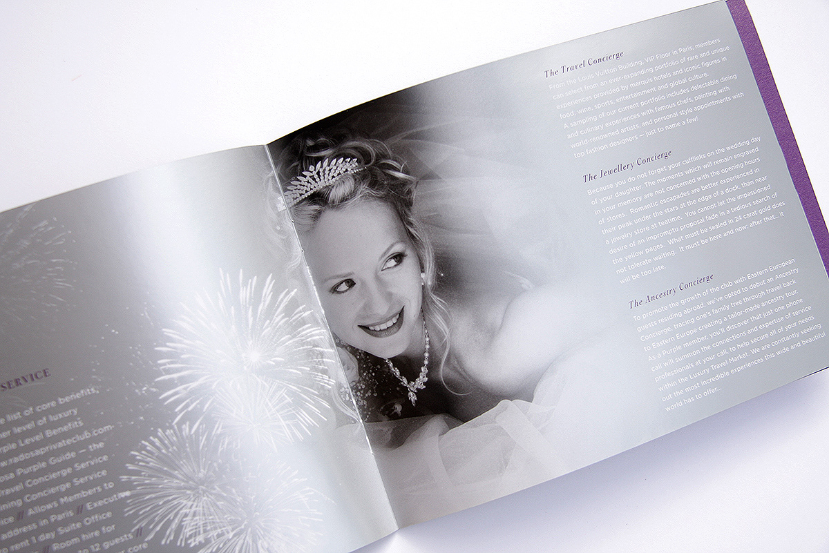 Création de brochure de présentation pour Radosa, services de conciergerie de luxe.