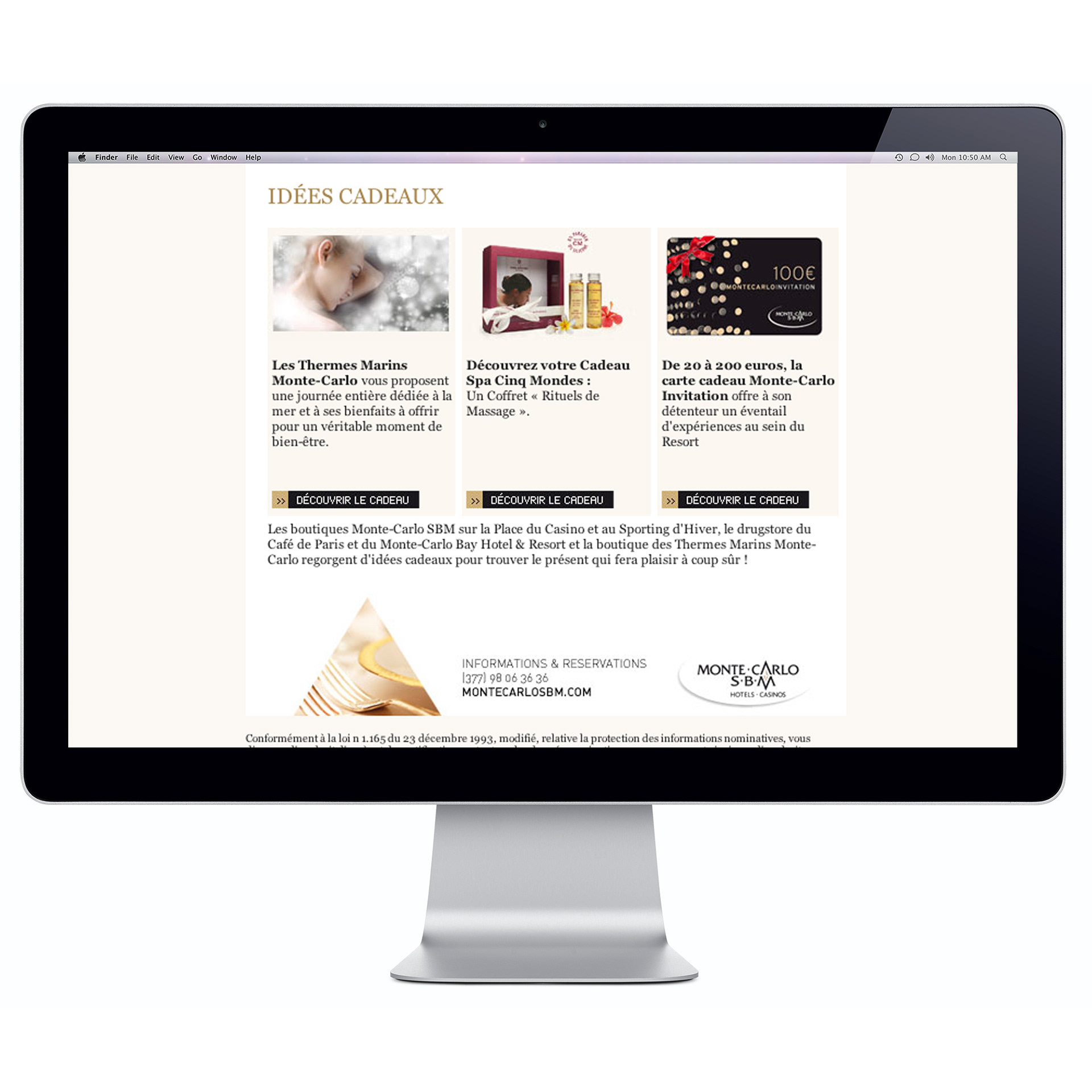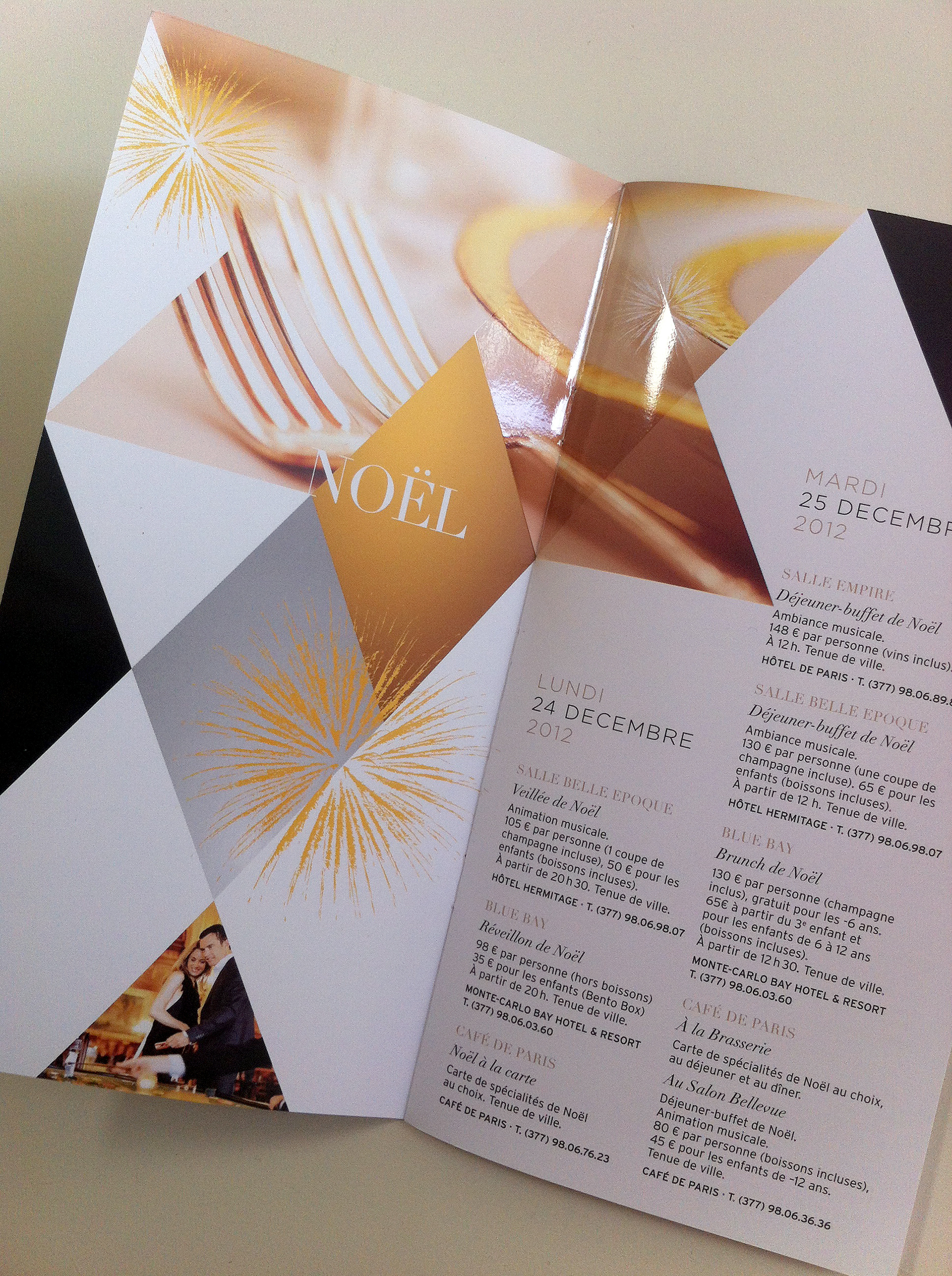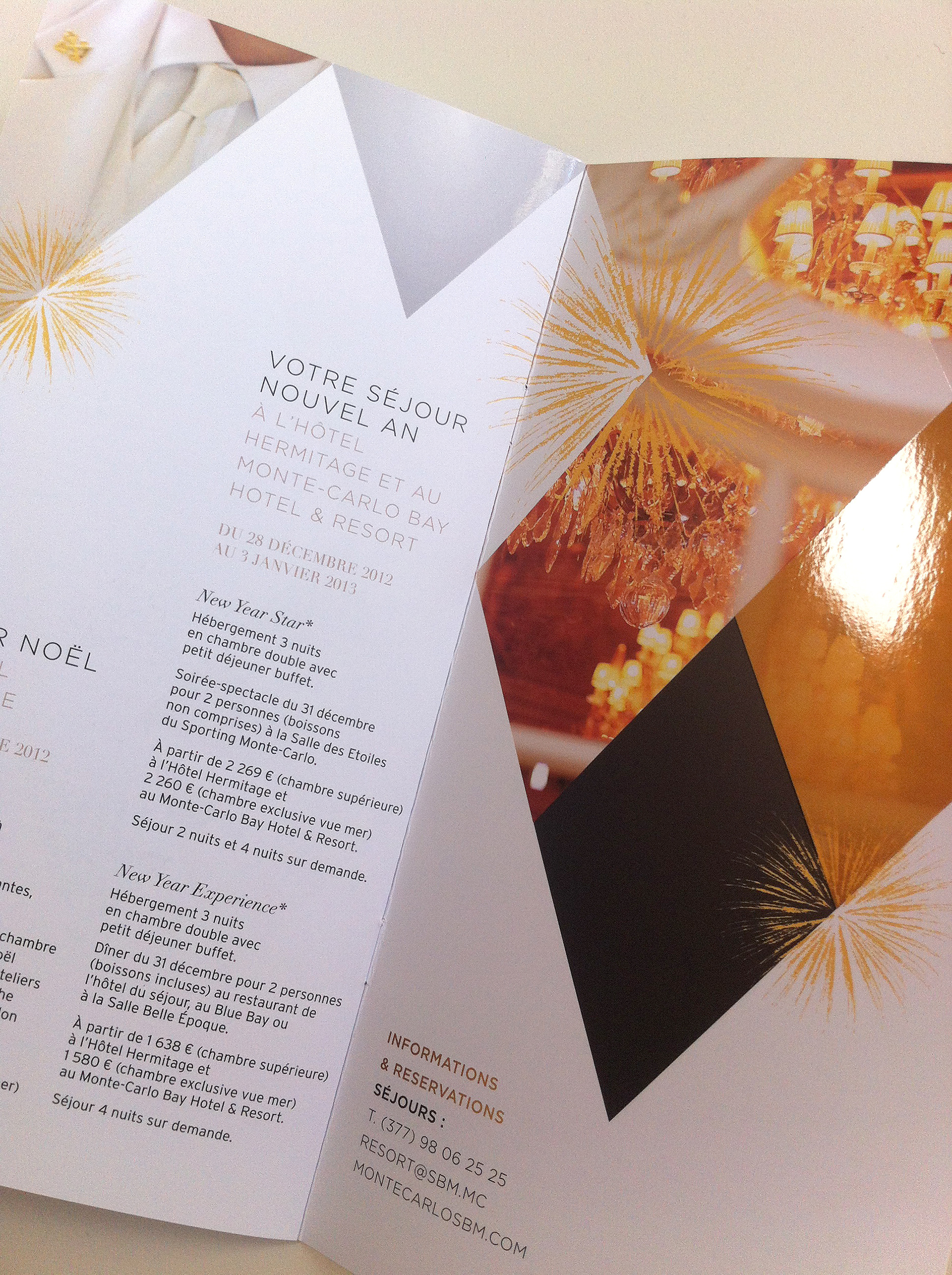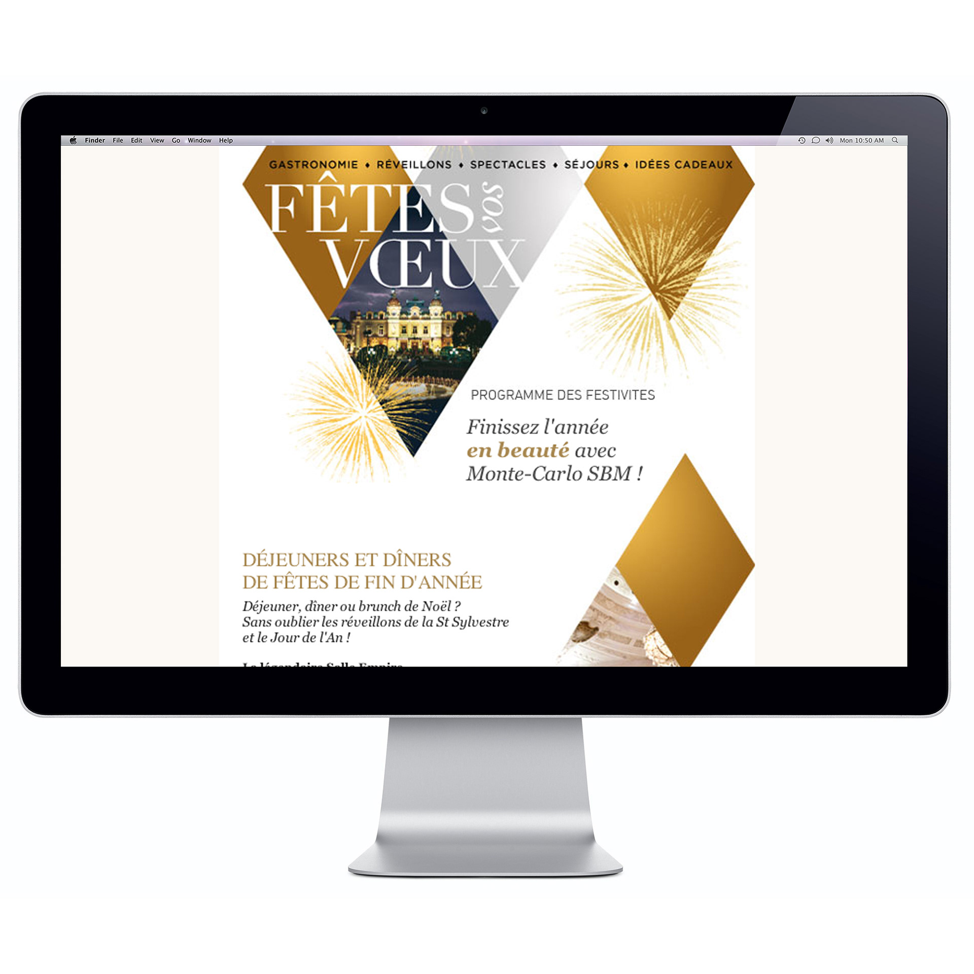 Conception de campagne promotionnelle pour les Réveillons et événements de fin d'année à Monte-Carlo au sein des établissements prestigieux Monte-Carlo SBM —hôtels, restaurants, casinos, salles de spectacle. Affichage, programme, e-mailing...